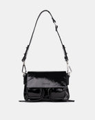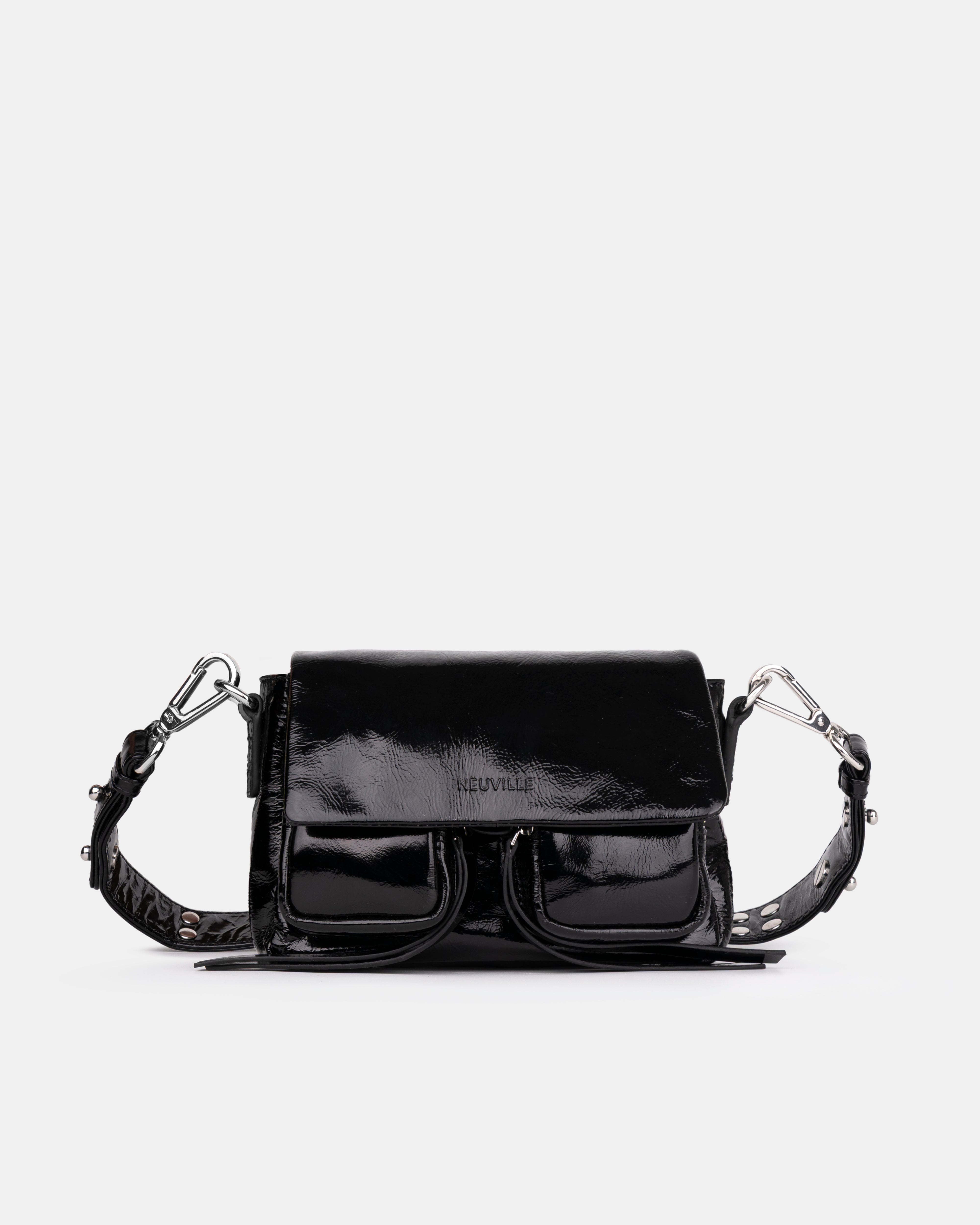 - Three interchangeable straps for easy transitions : a leather shoulder strap with metal studs, and adjustable leather crossbody strap and a decorative metal chain