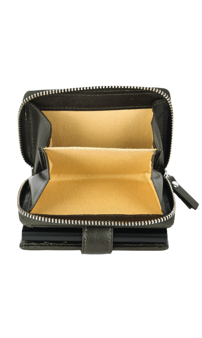 - Es gibt einen Platz für Geldscheine, Quittungen und Karten