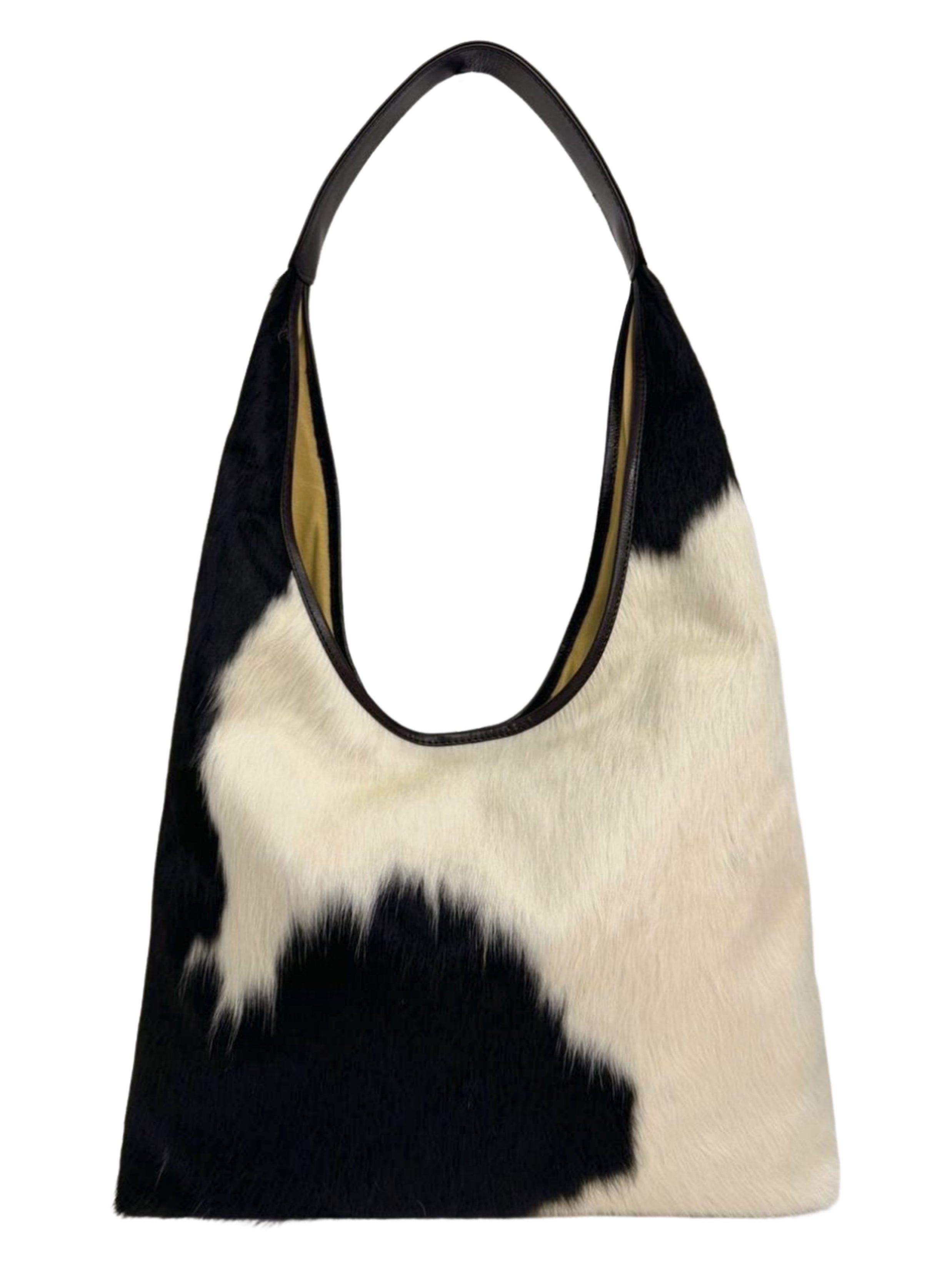The front part of the bag has amazing cowhair and the back part is made of 100% leather