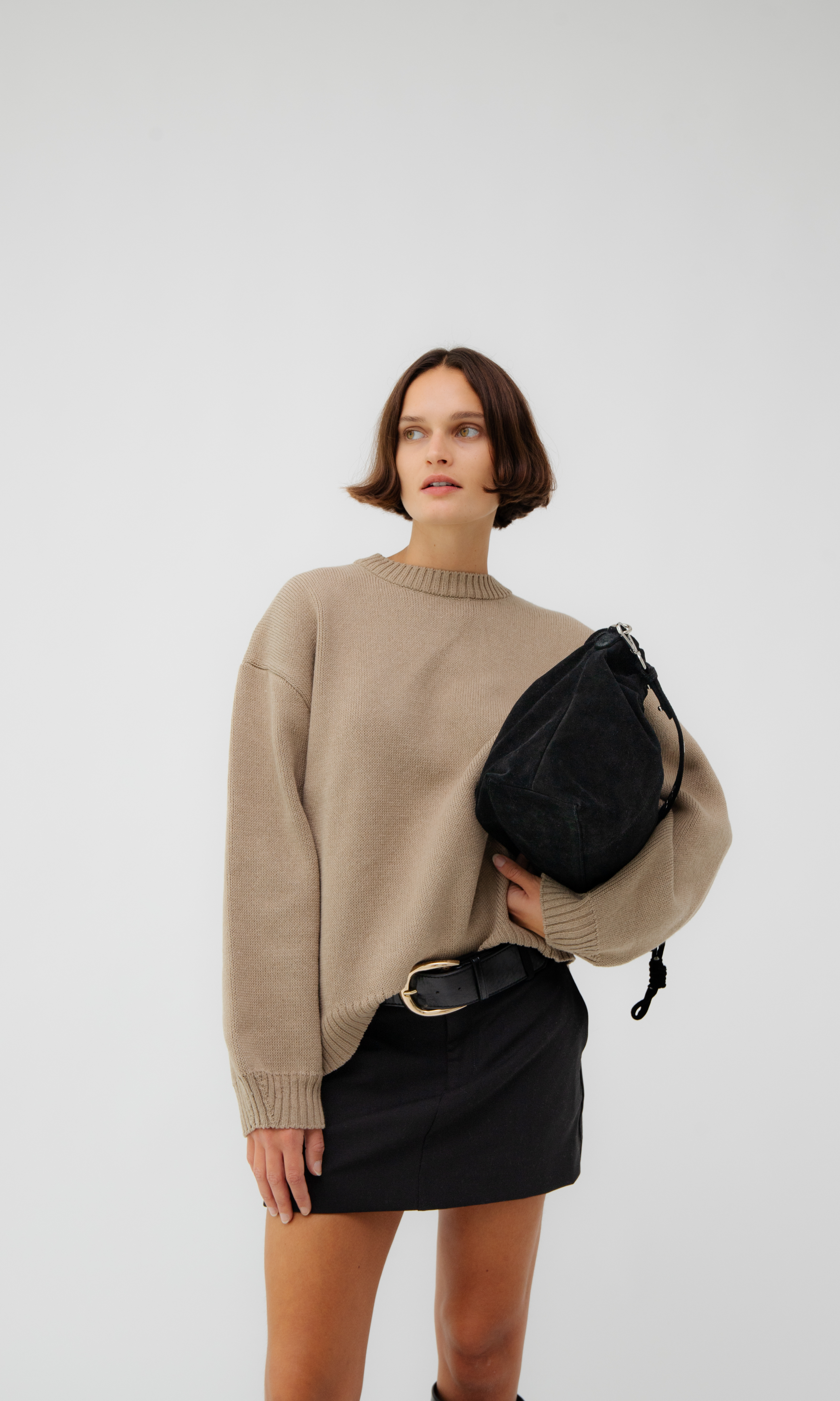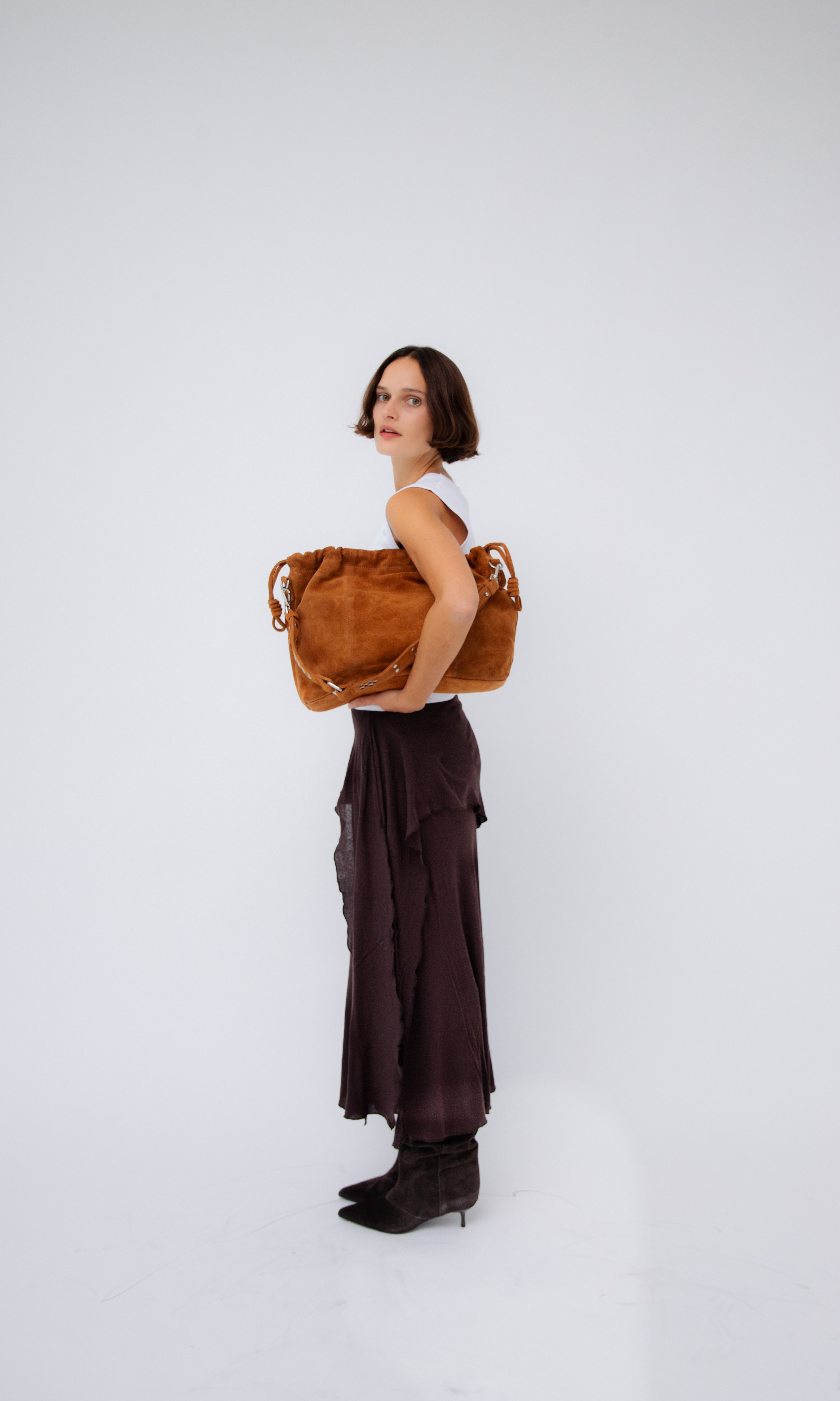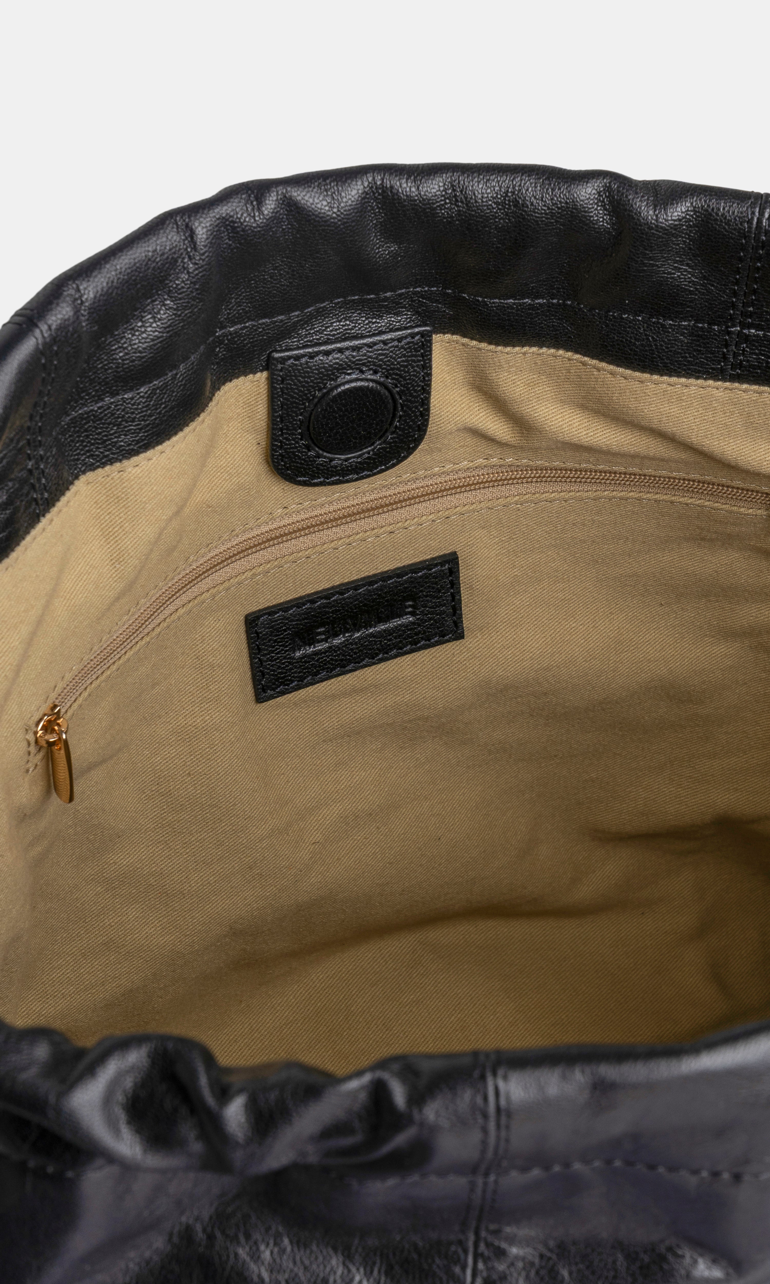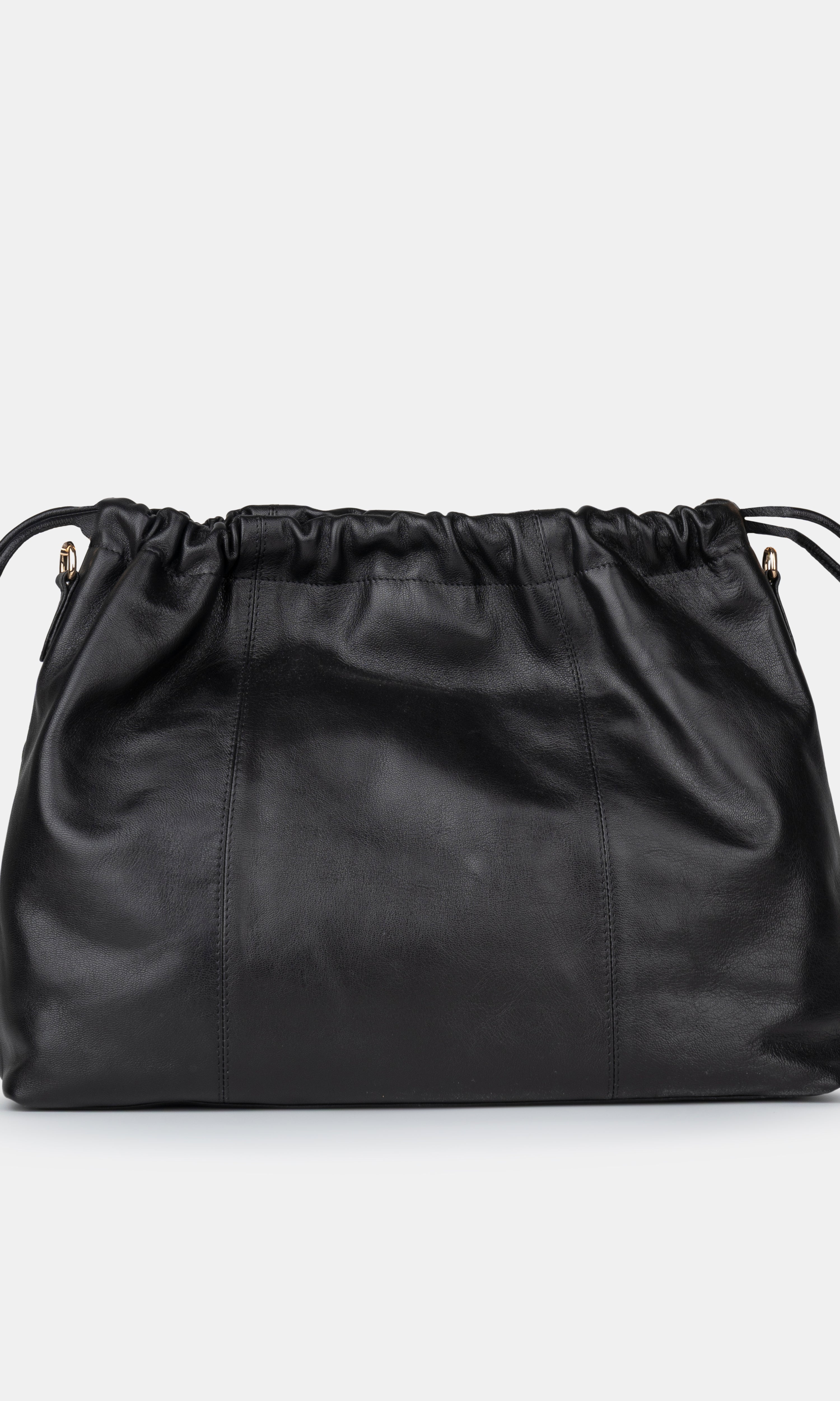 • Two interchangeable straps for easy transitions : a leather shoulder strap with metal studs, and adjustable leather crossbody strap.