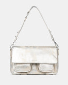 - Three interchangeable straps for easy transitions : a leather shoulder strap with metal studs, and adjustable leather crossbody strap and a decorative metal chain