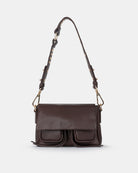 - Three interchangeable straps for easy transitions : a leather shoulder strap with metal studs, and adjustable leather crossbody strap and a decorative metal chain