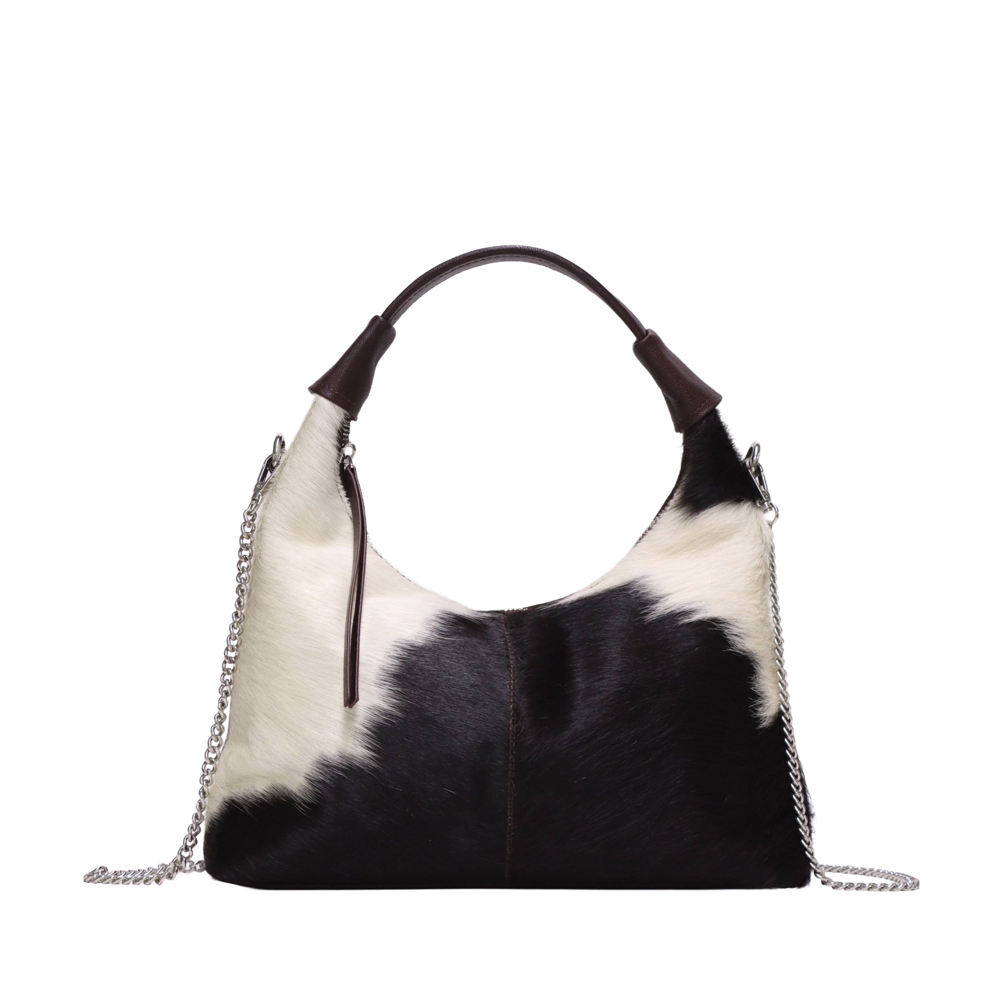 The front part of the bag has amazing cowhair and the back part is made of 100% leather