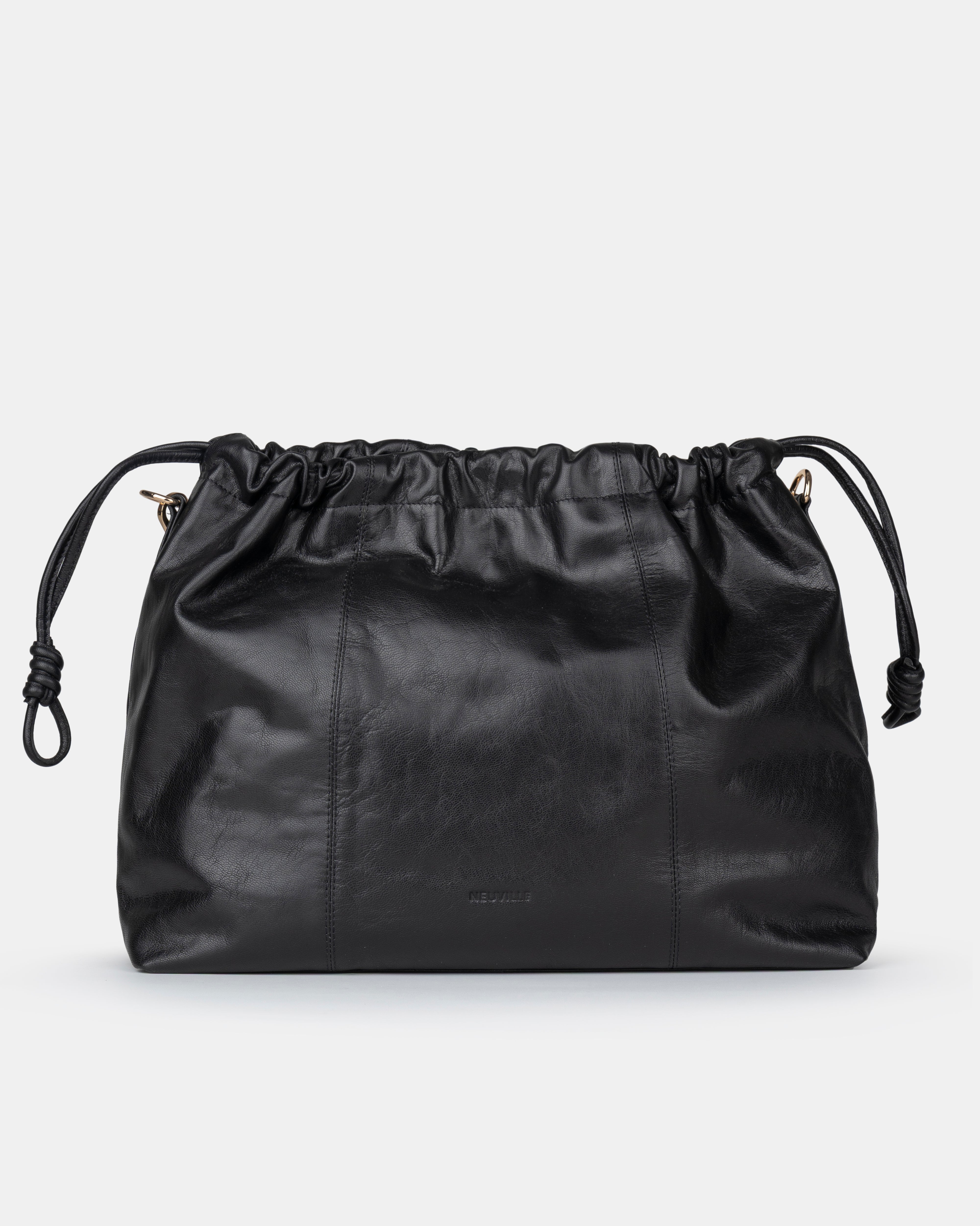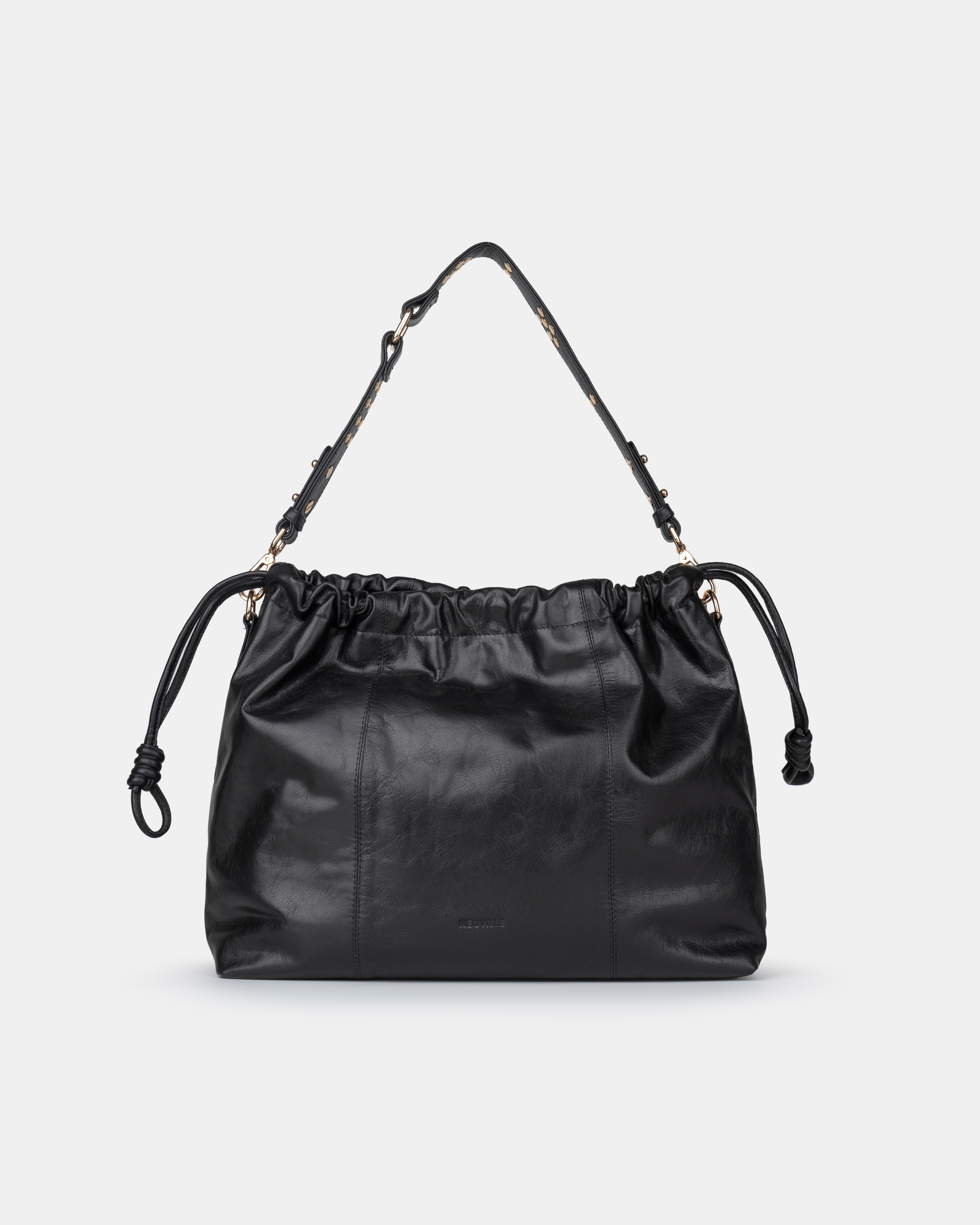 • Two interchangeable straps for easy transitions : a leather shoulder strap with metal studs, and adjustable leather crossbody strap.
