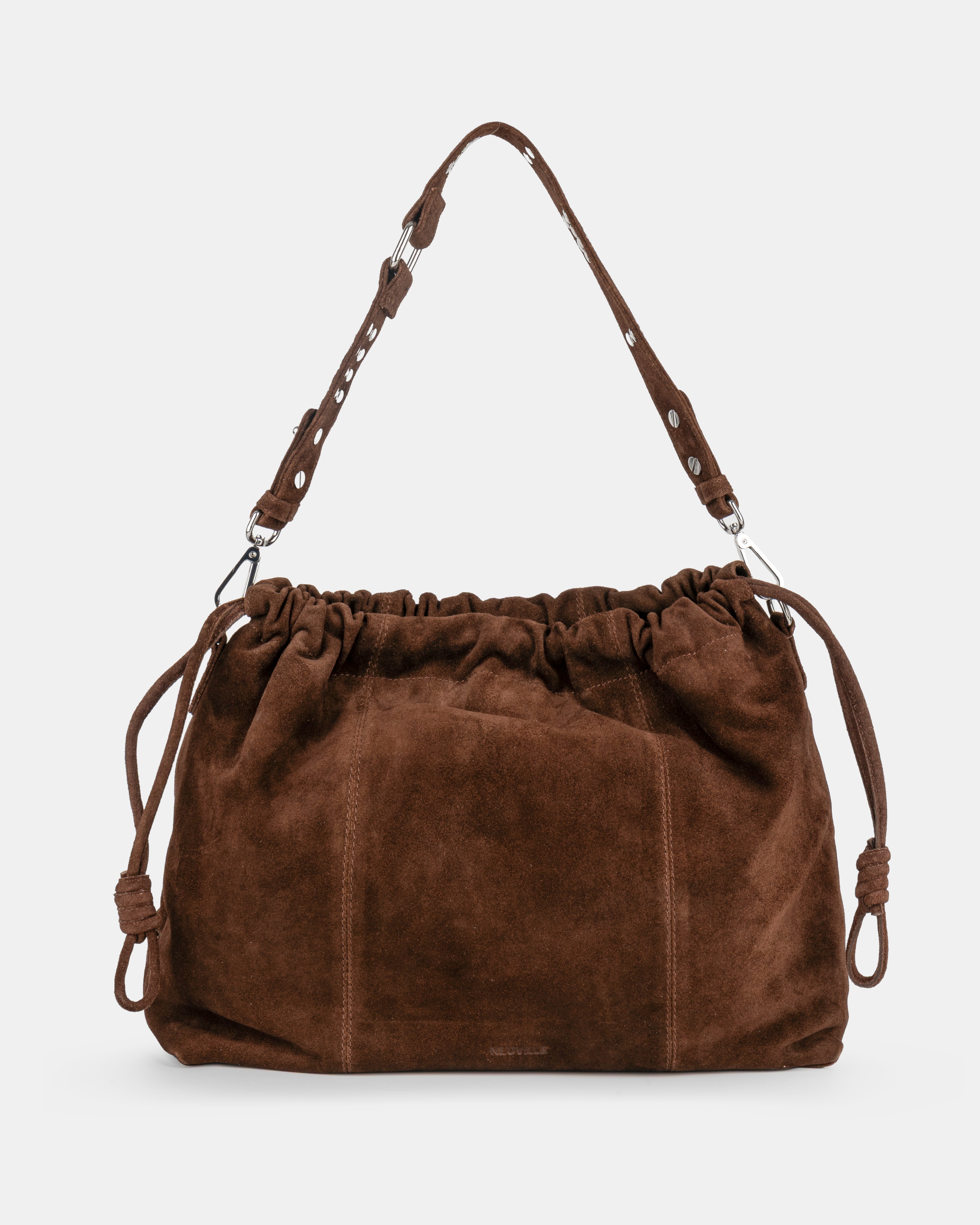 - A magnetic closure for quick and easy acces and two cords adjust the shape of the bag and secure it.