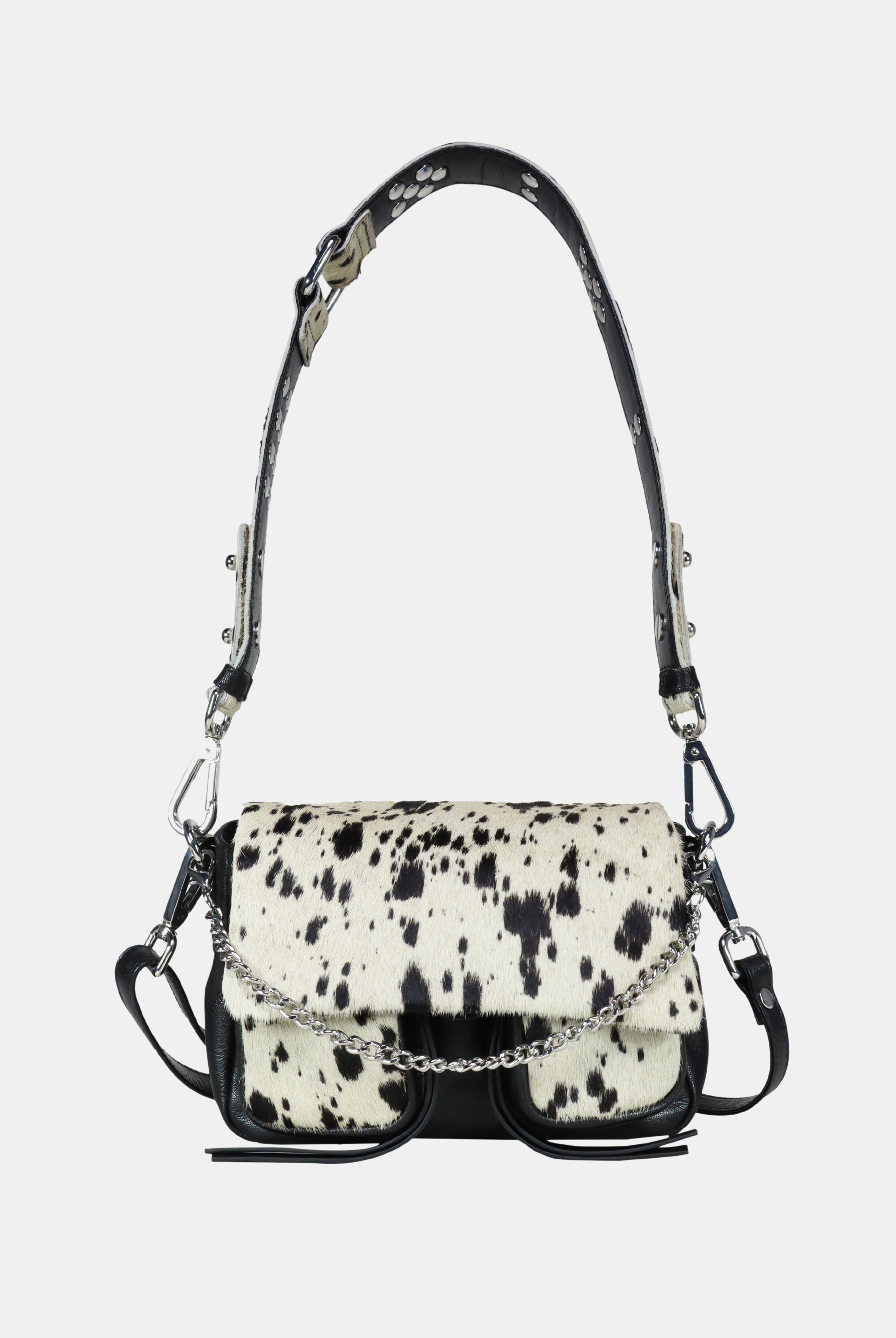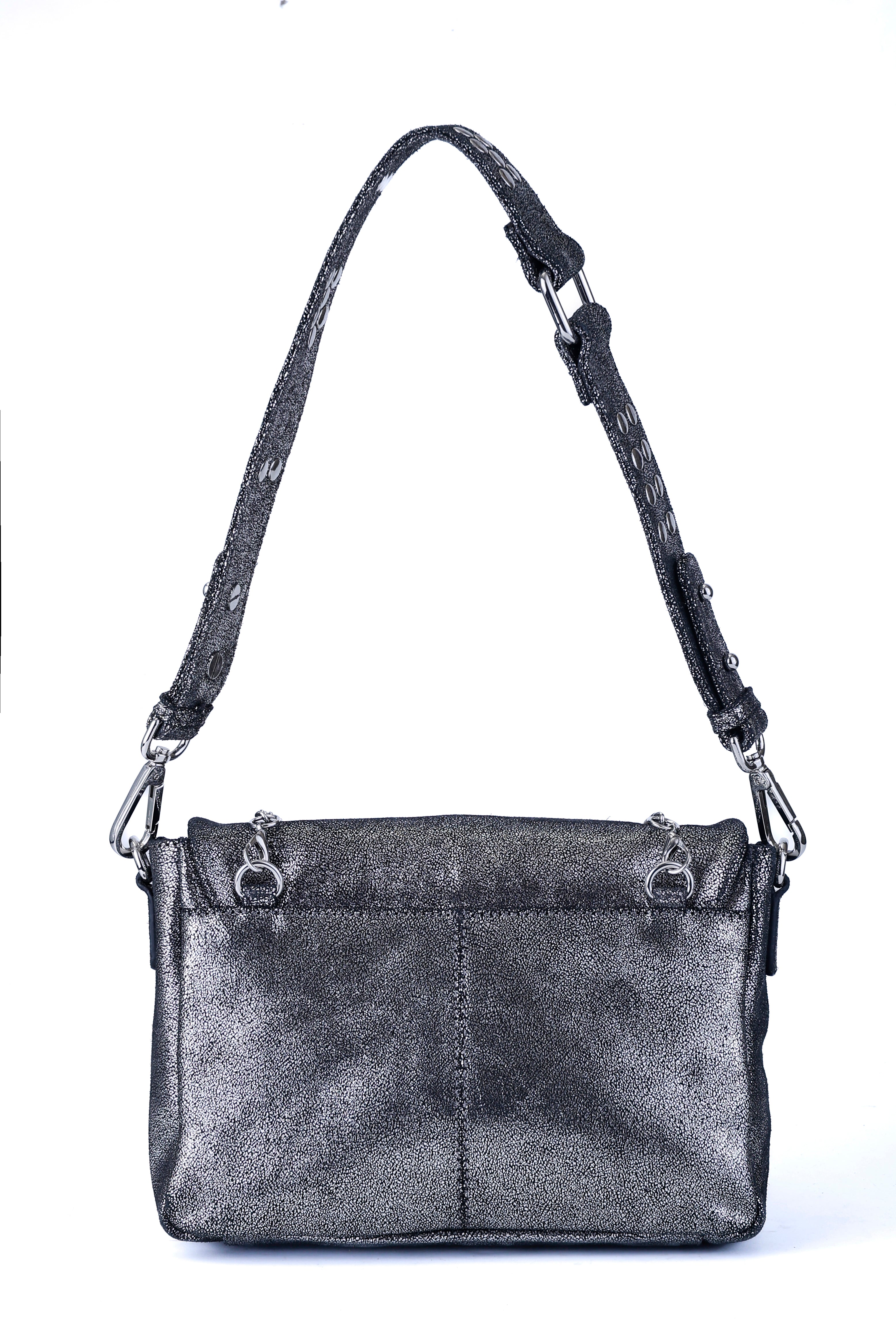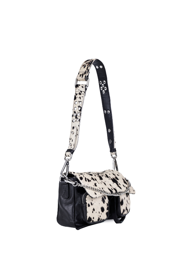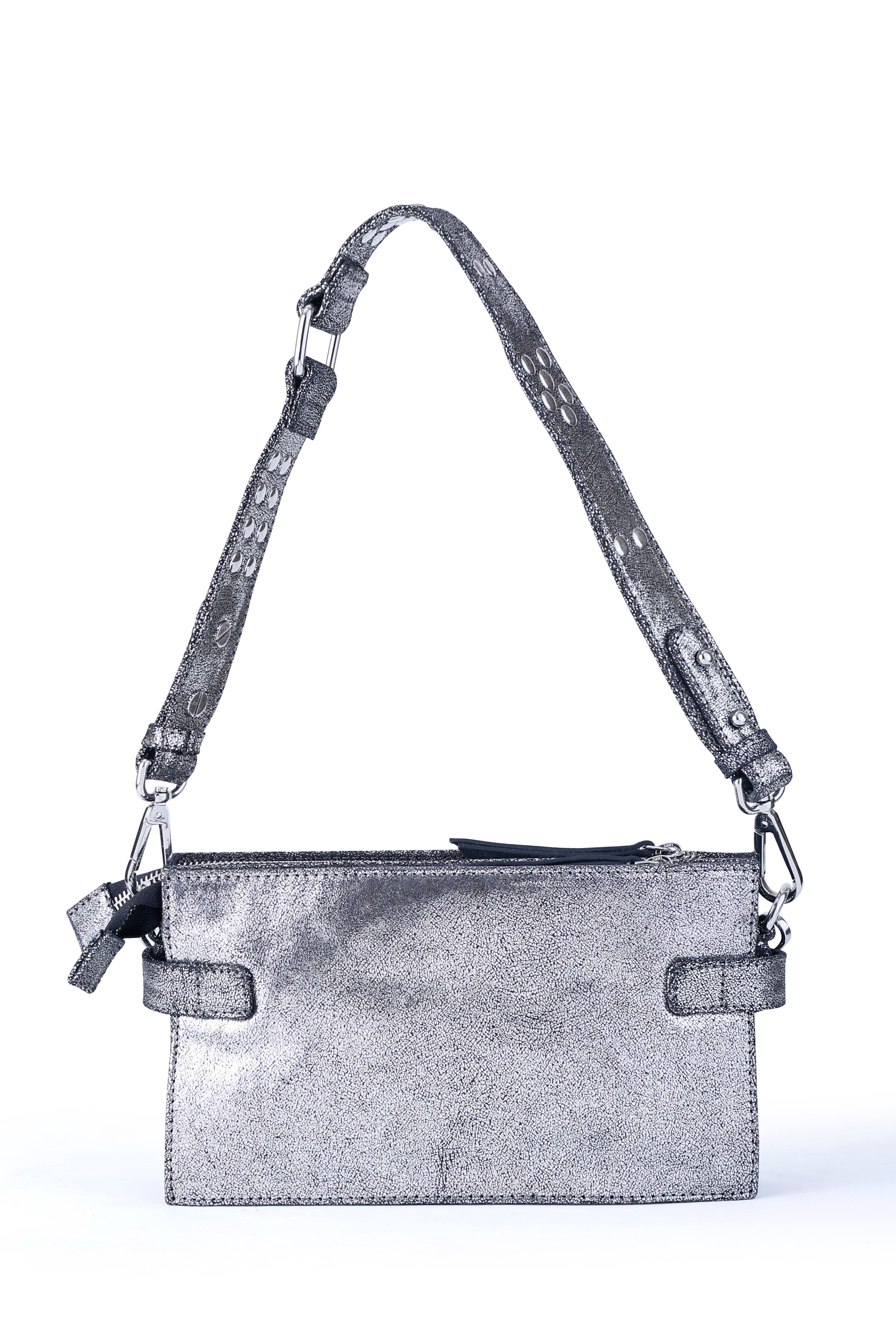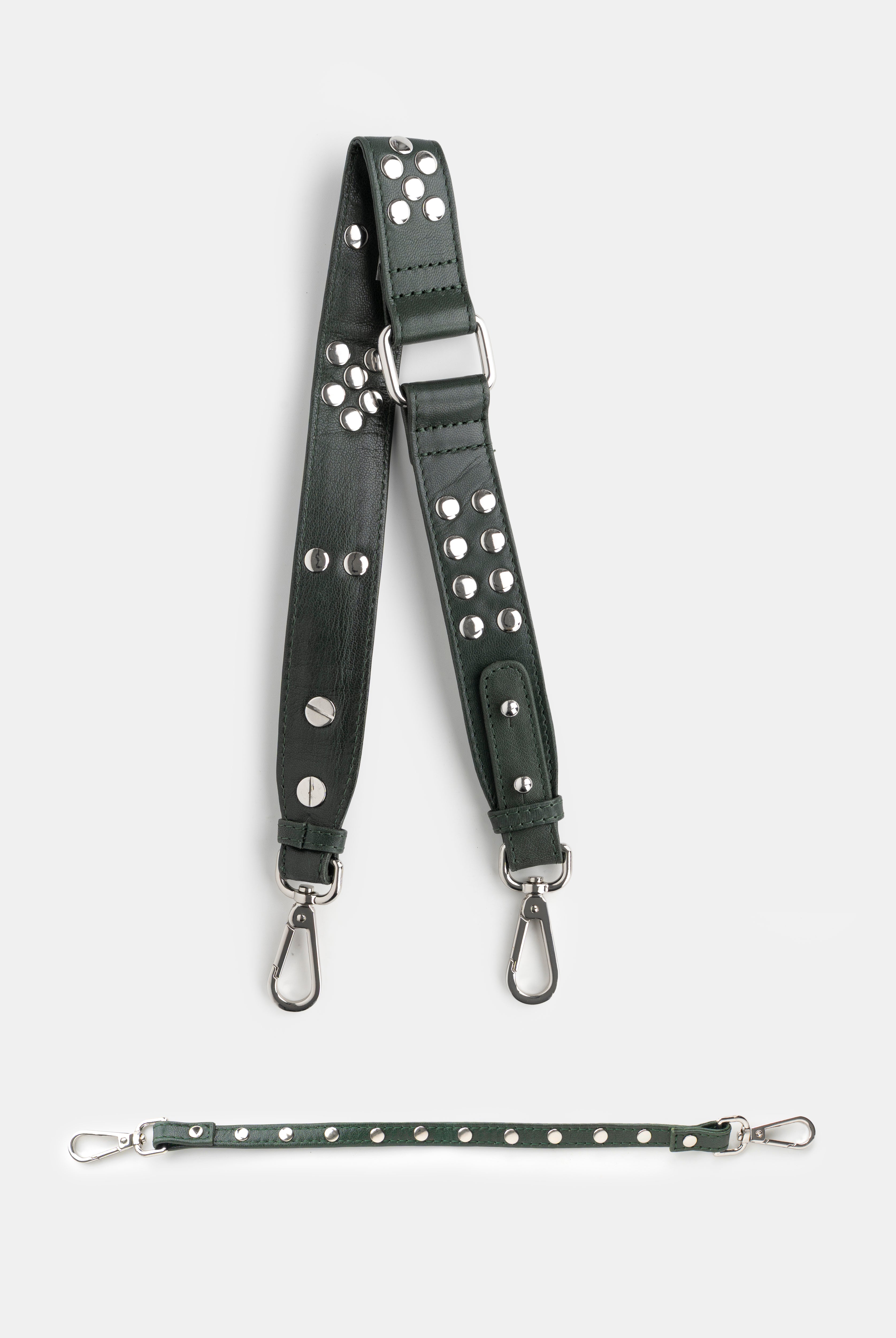 All of these amazing bags in this collection have our iconic shoulder strap with studs, plus a longer strap that is adjustable in size and withut studs. This makes these bags even more versatile because you can change the look of the bag by adding or changing the straps whenever you want.