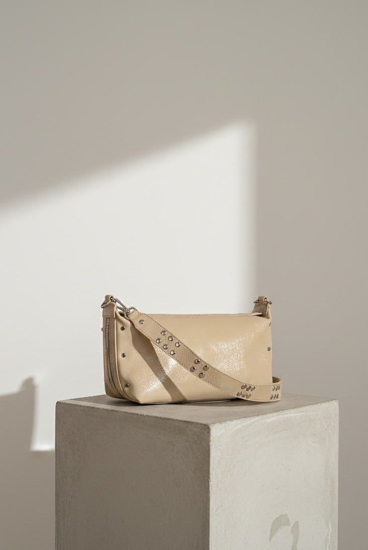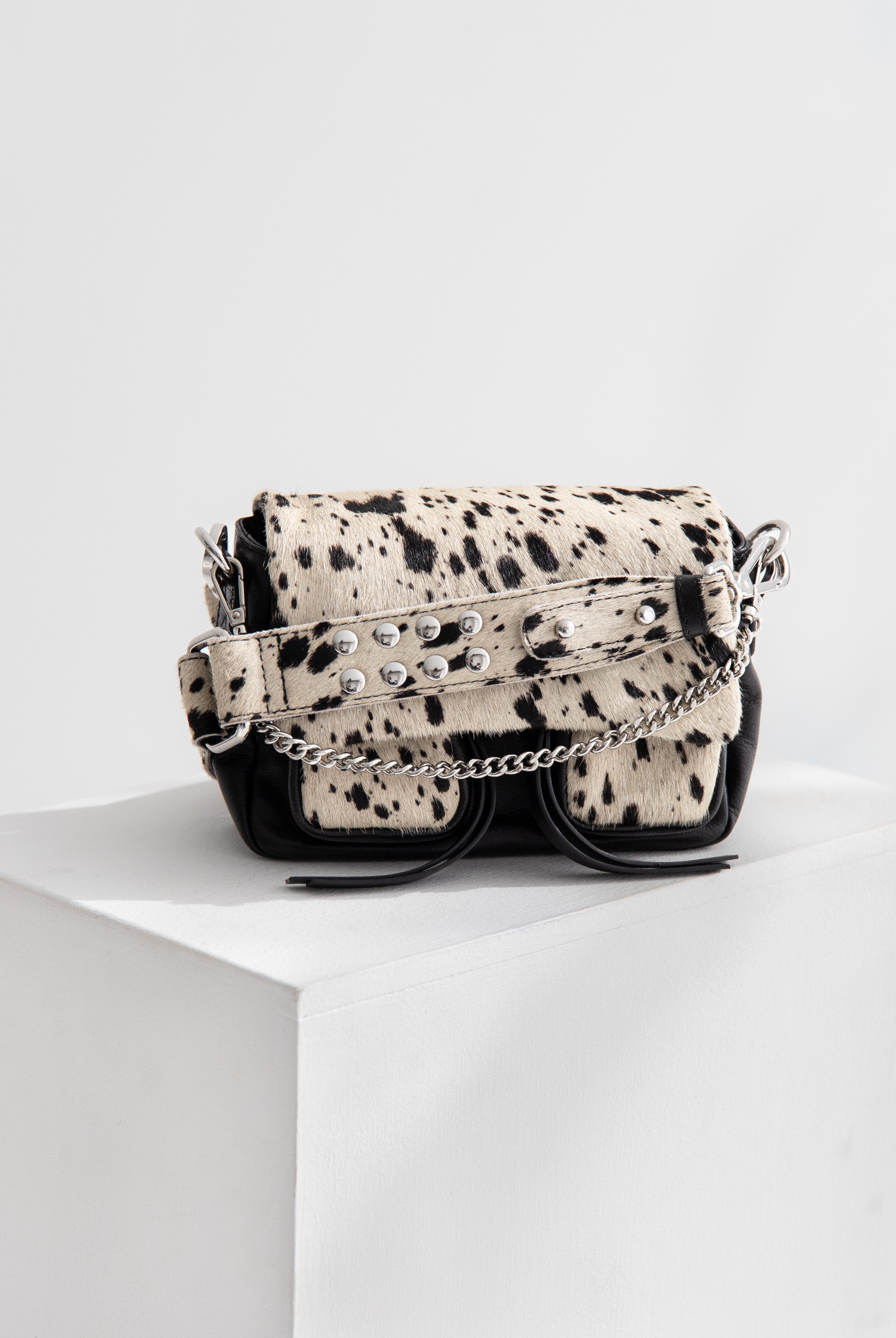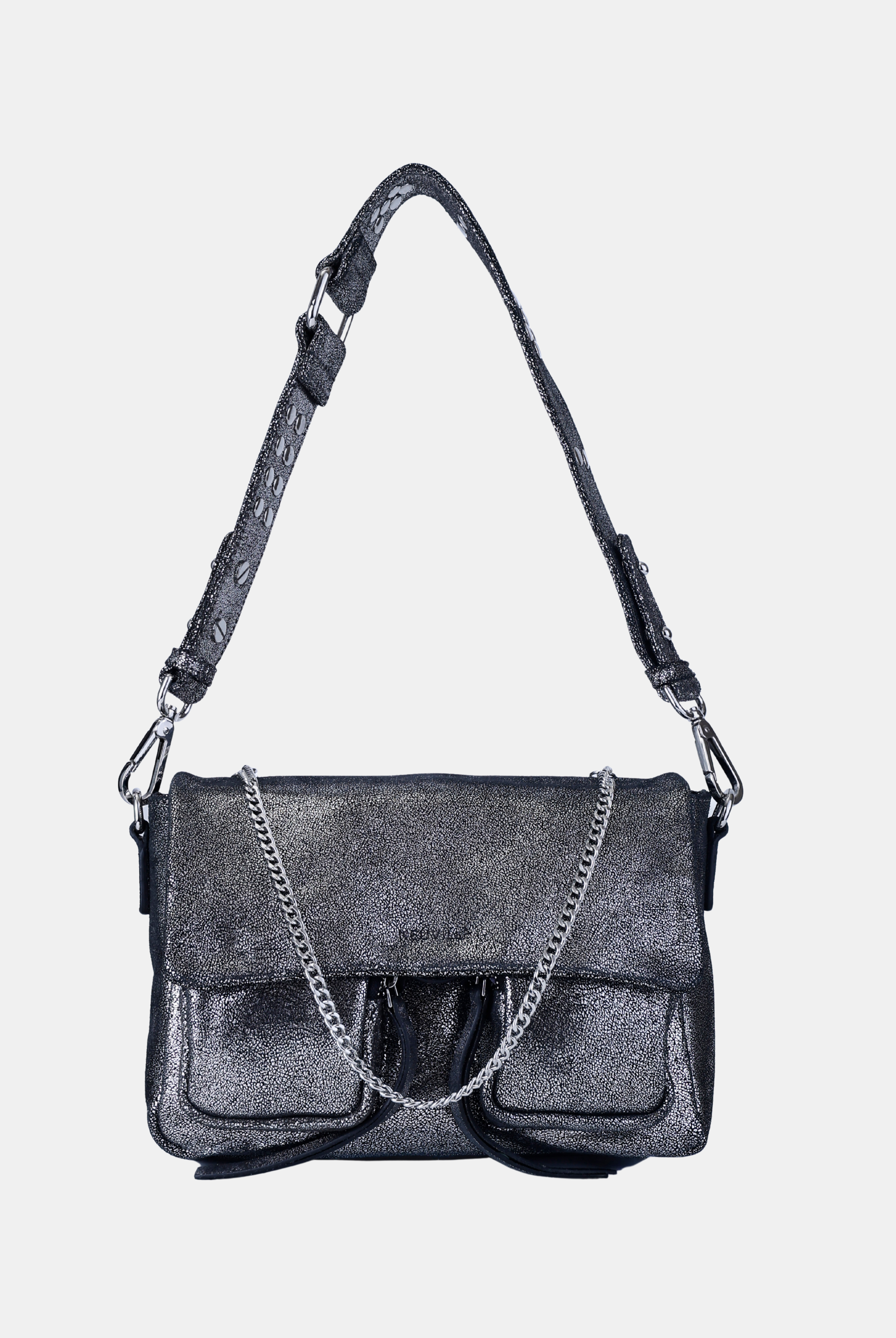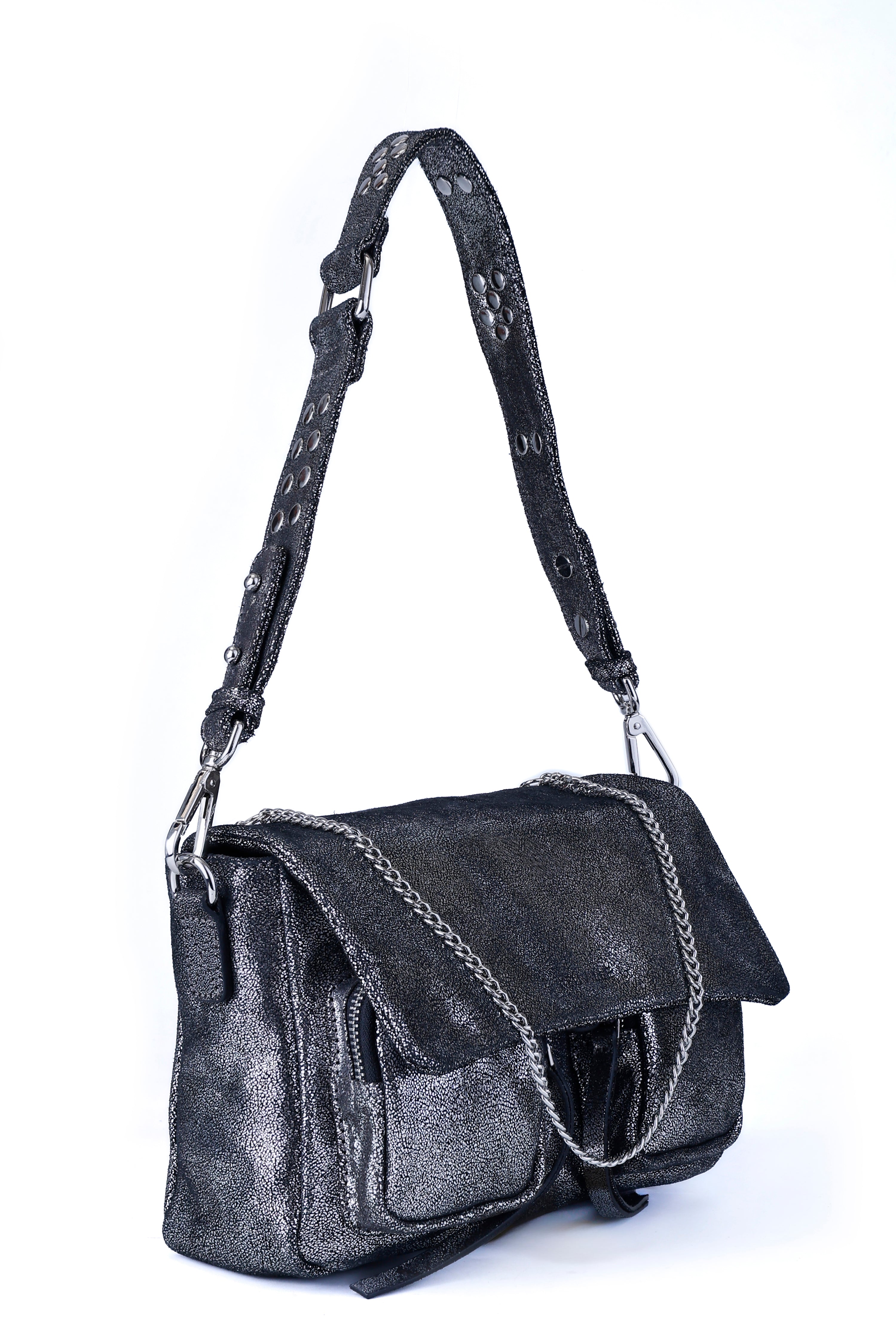 All of these amazing bags in this collection have our iconic shoulder strap with studs, plus a longer strap that is adjustable in size and withut studs. This makes these bags even more versatile because you can change the look of the bag by adding or changing the straps whenever you want.