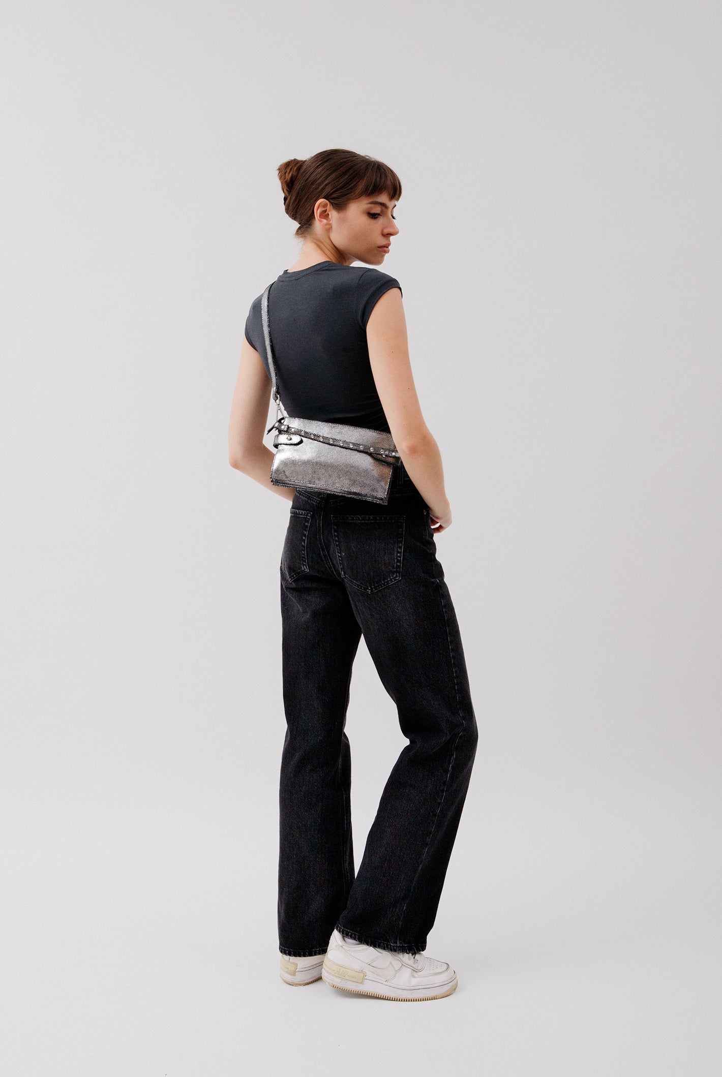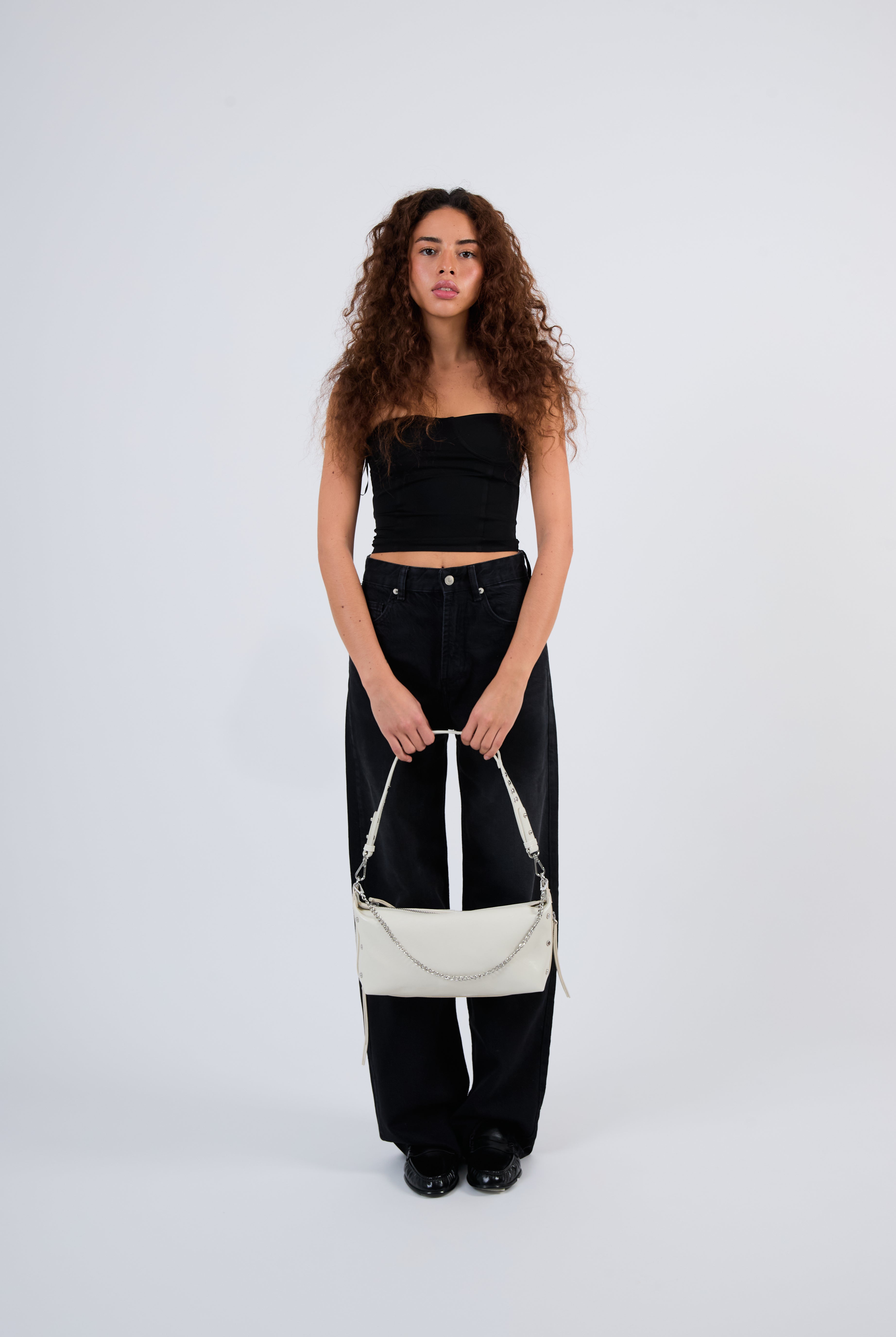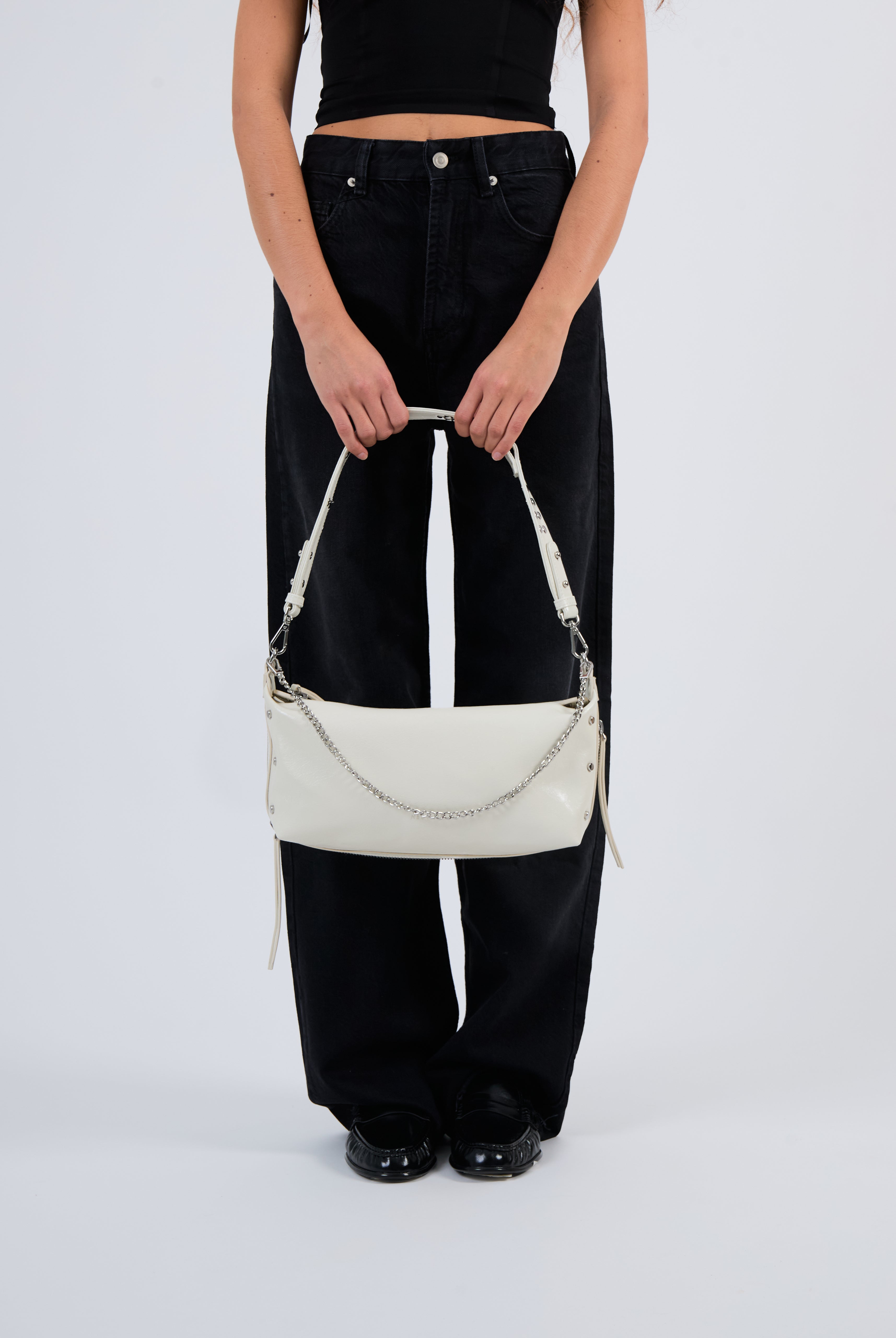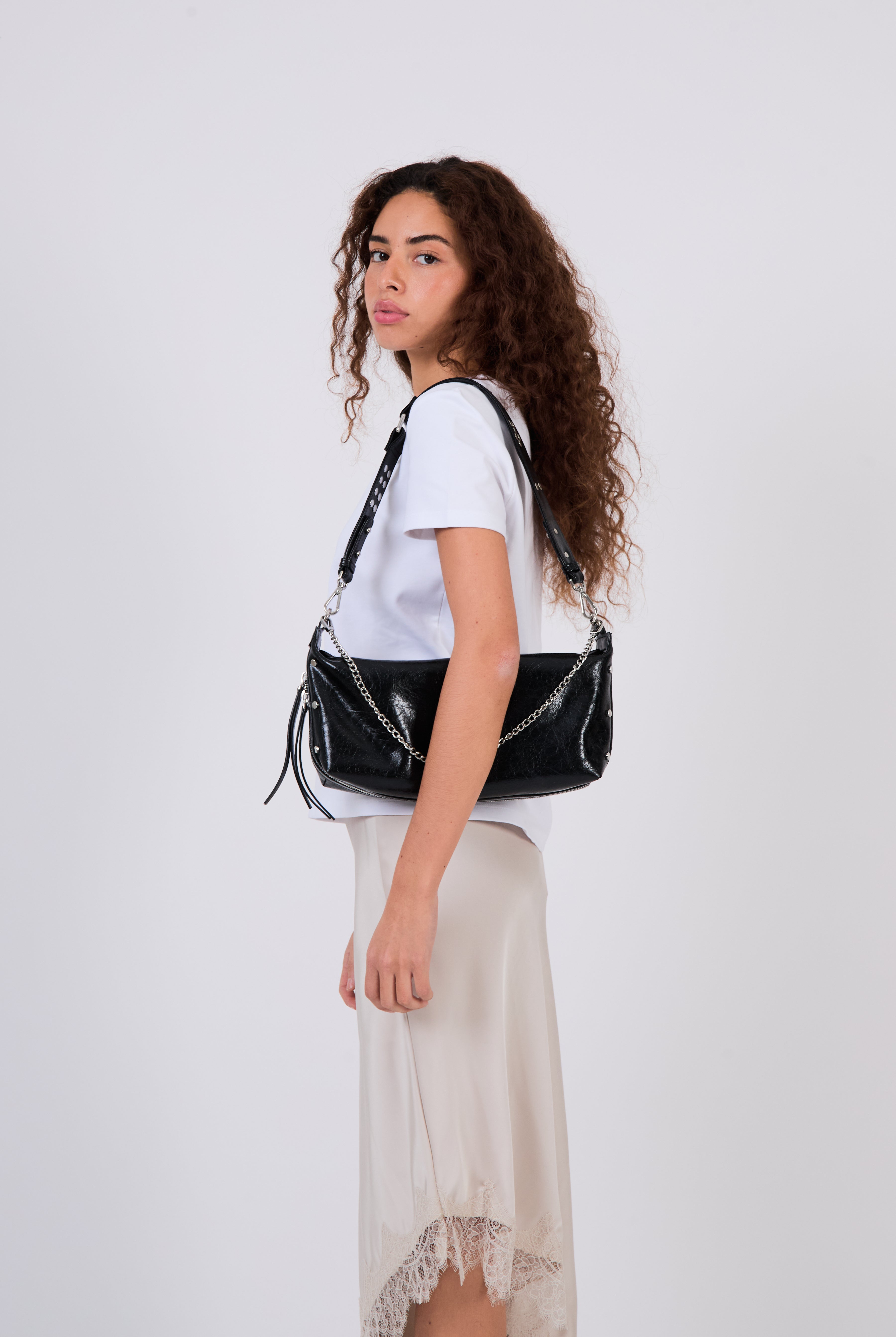 All of these amazing bags in this collection have our iconic shoulder strap with studs, plus a longer strap that is adjustable in size and withut studs. This makes these bags even more versatile because you can change the look of the bag by adding or changing the straps whenever you want.