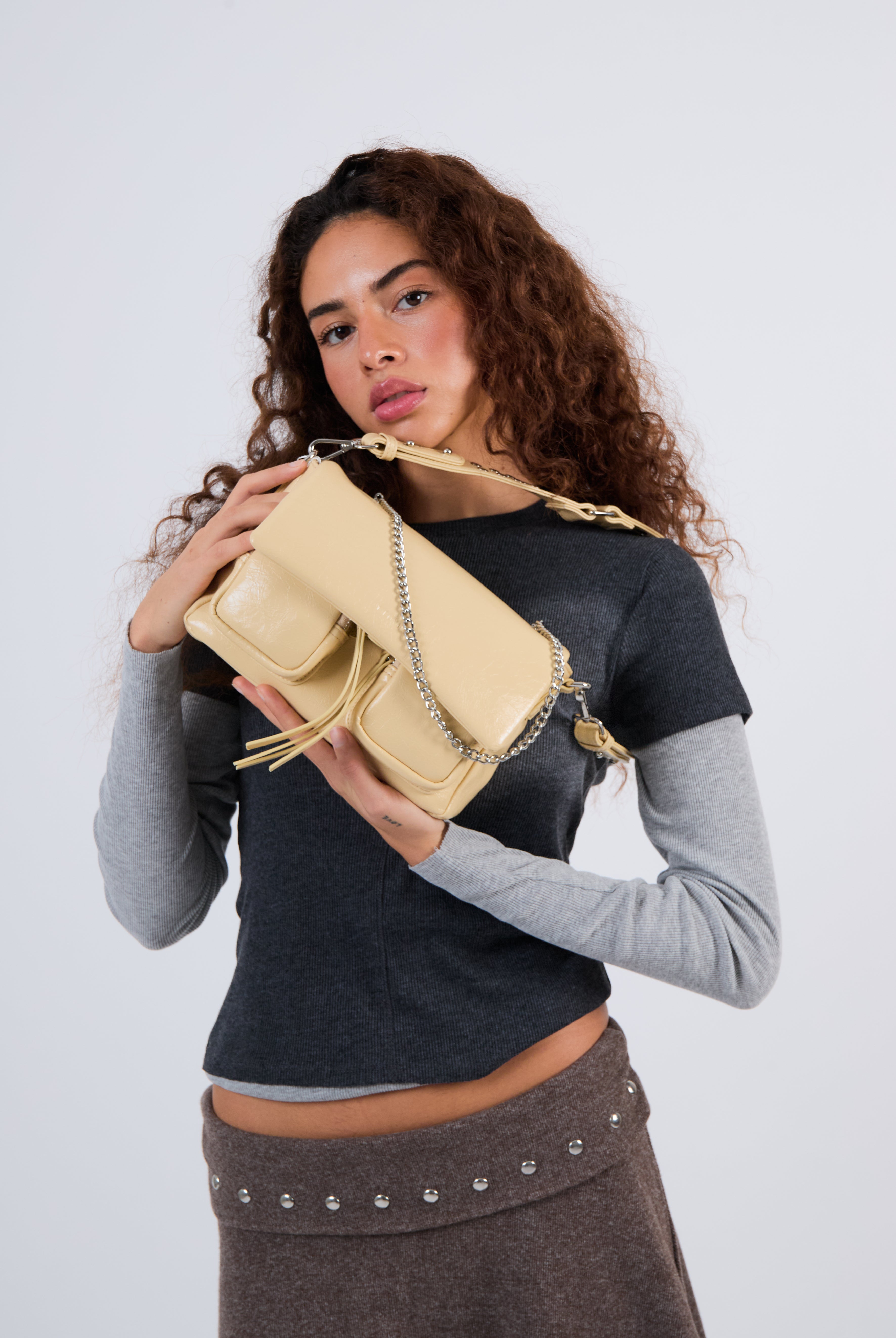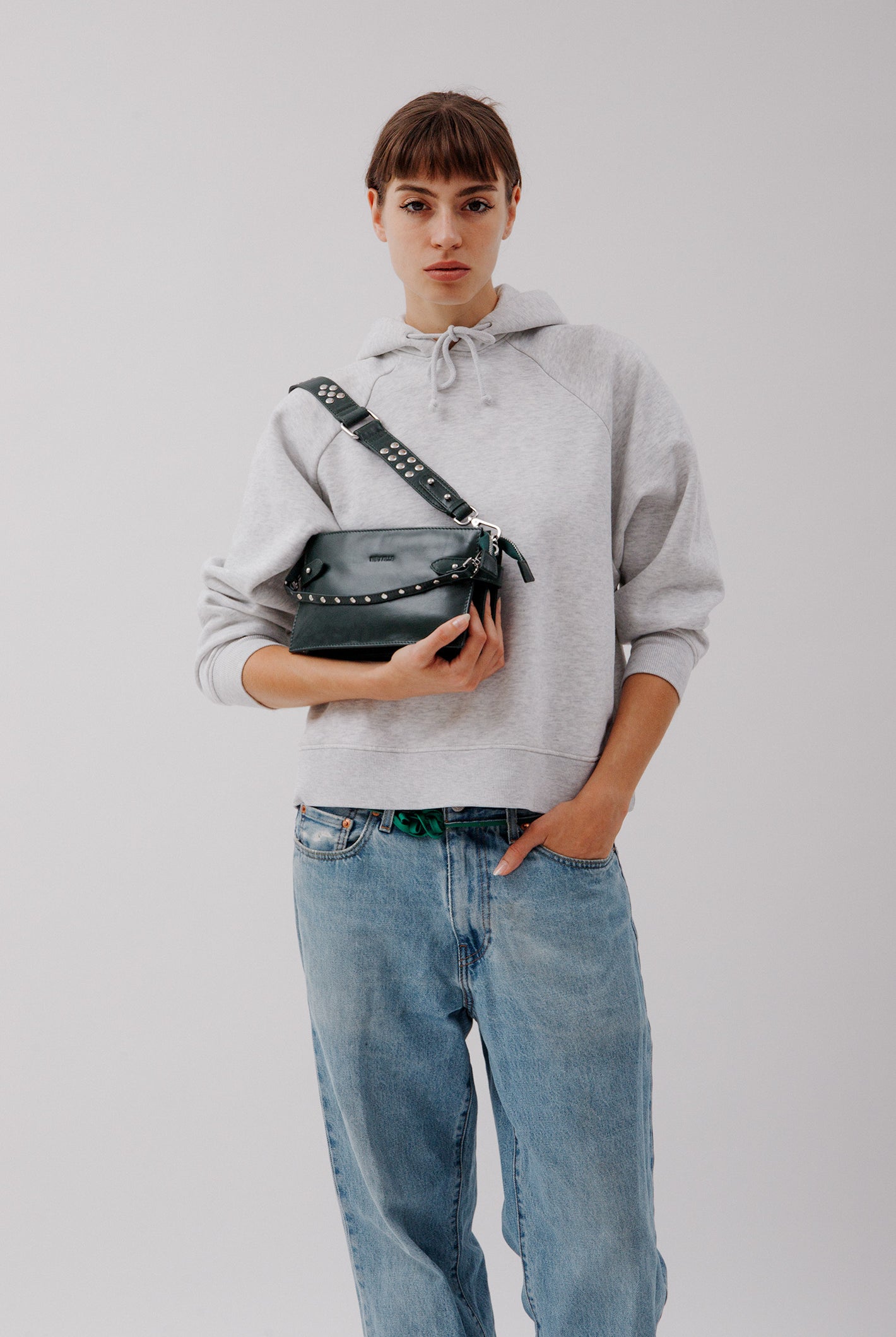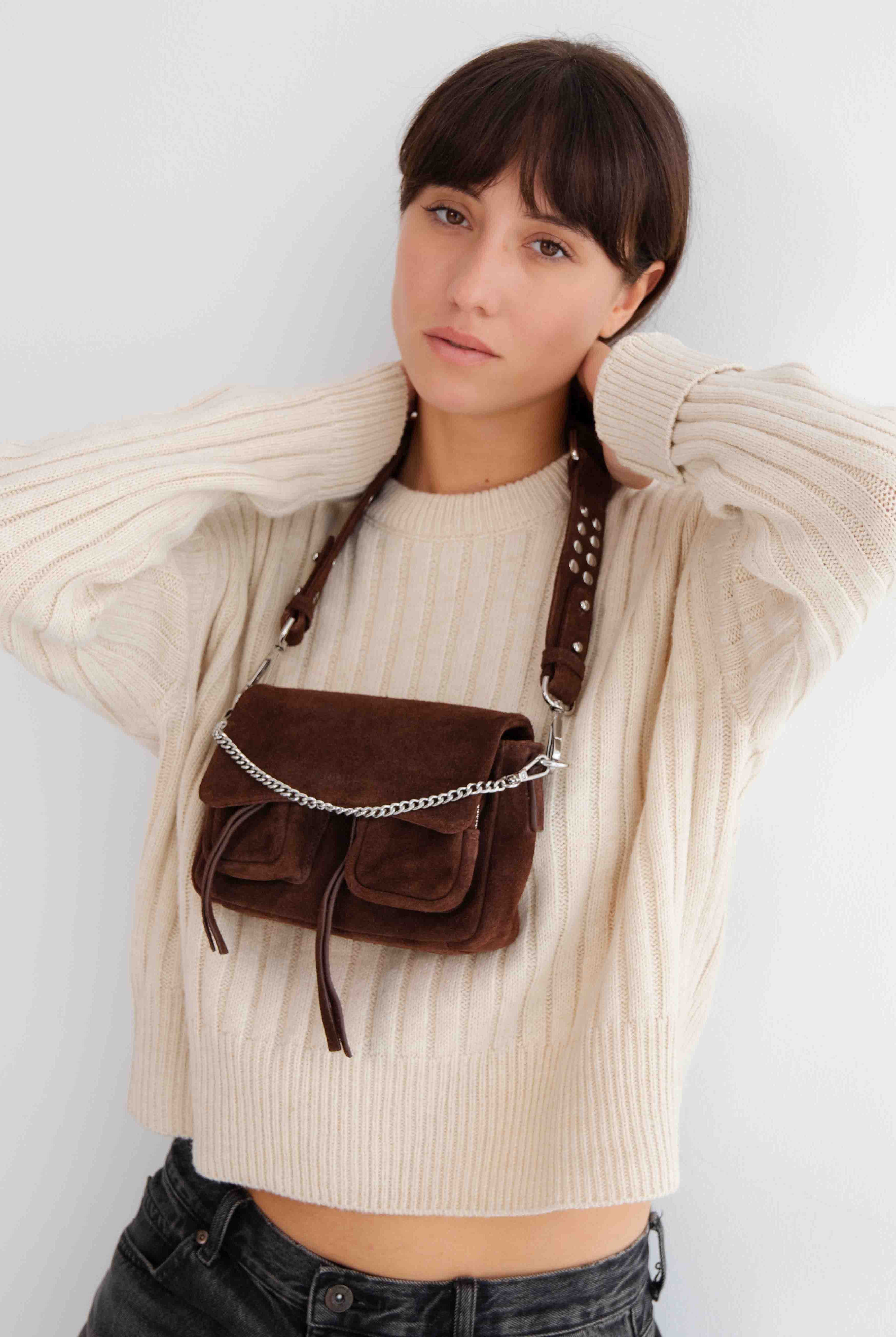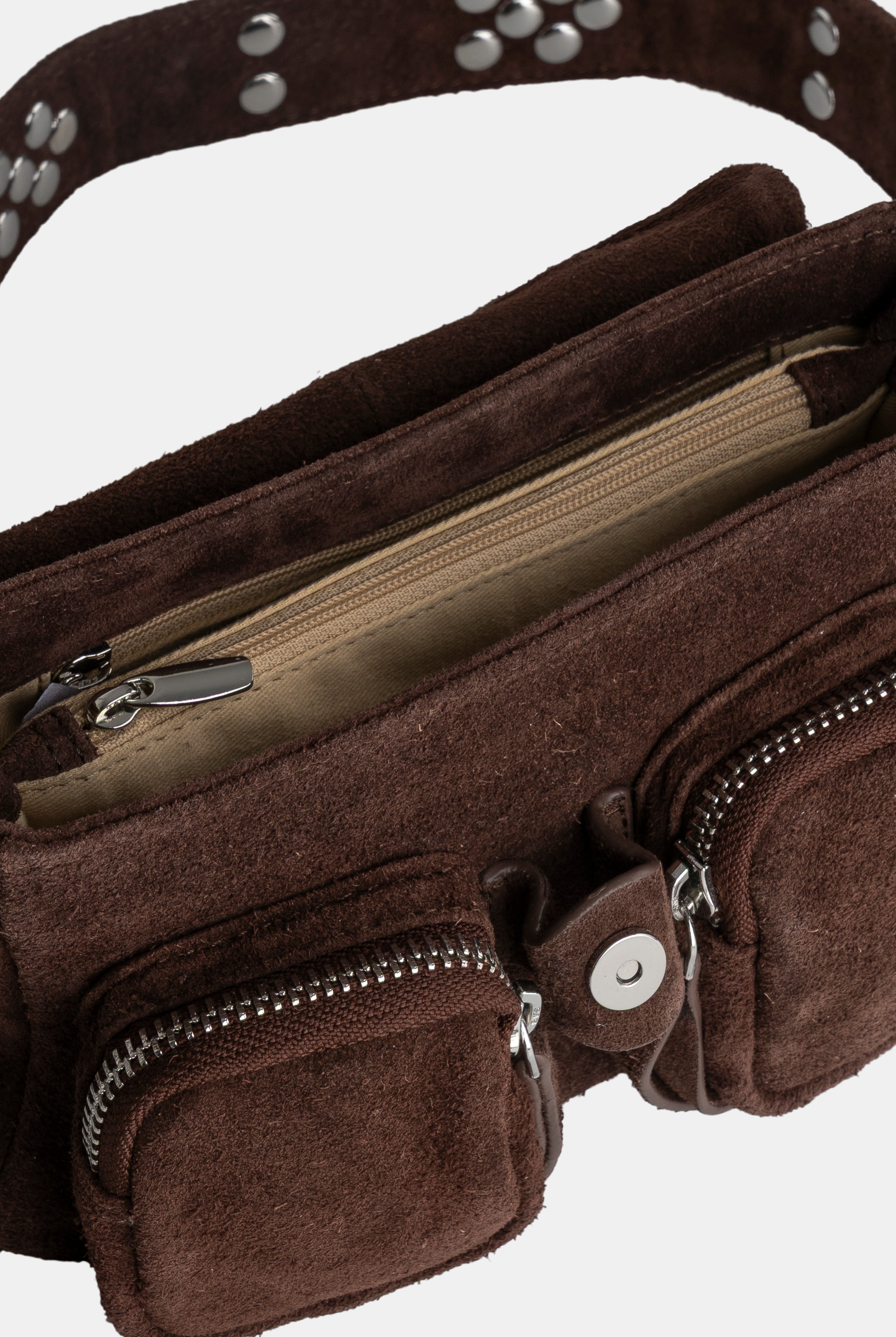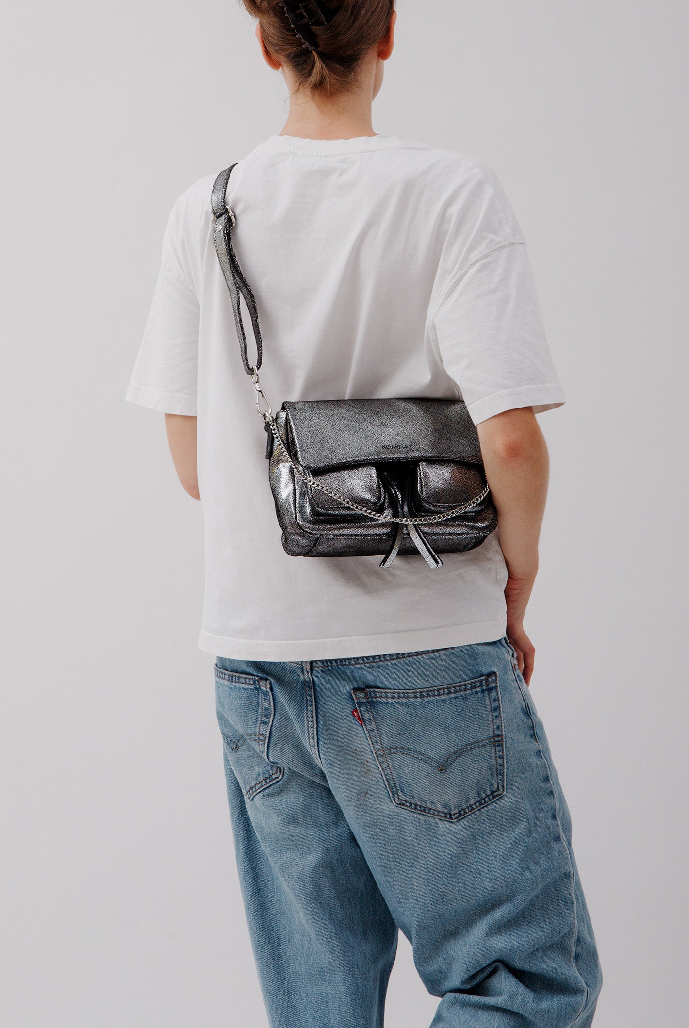 All of these amazing bags in this collection have our iconic shoulder strap with studs, plus a longer strap that is adjustable in size and withut studs. This makes these bags even more versatile because you can change the look of the bag by adding or changing the straps whenever you want.
