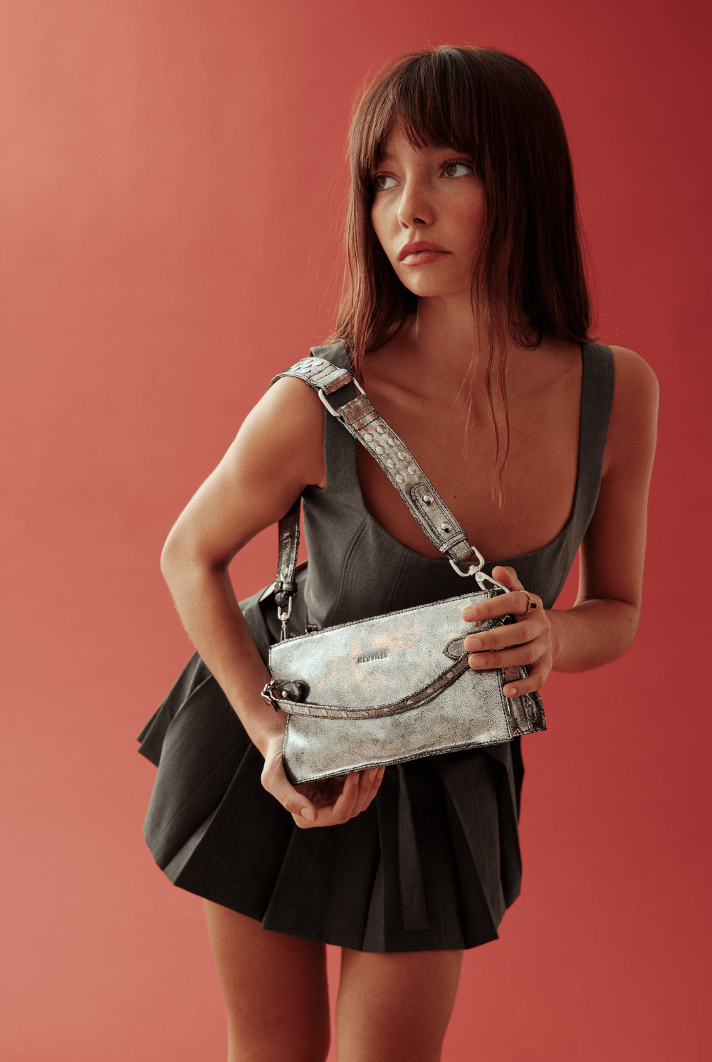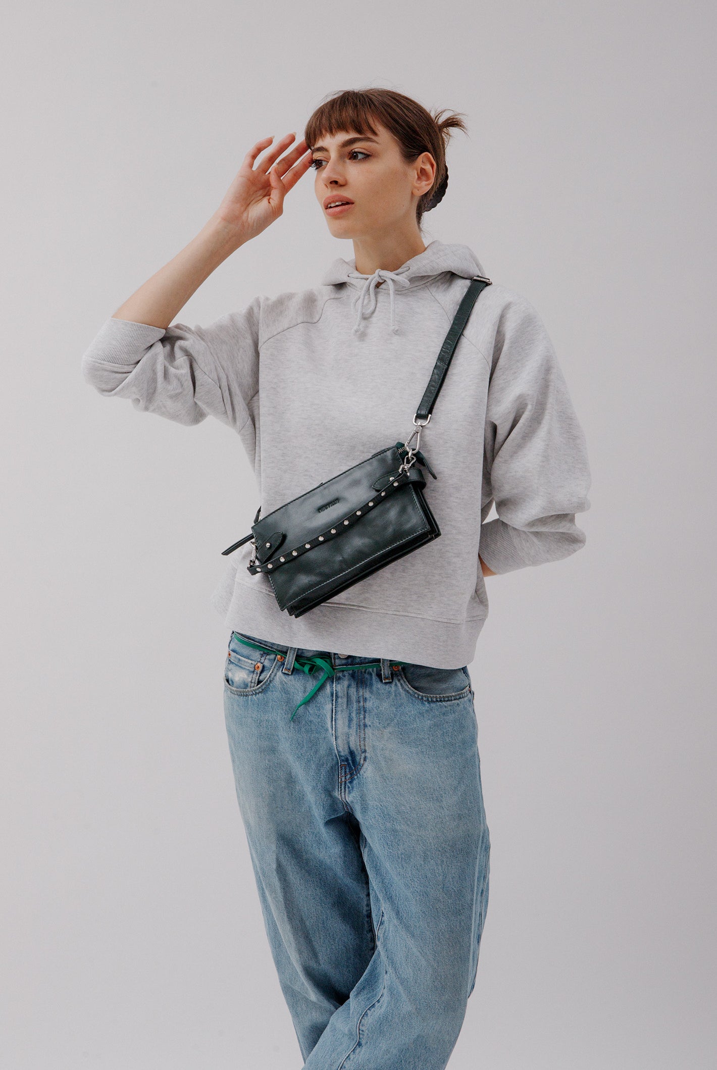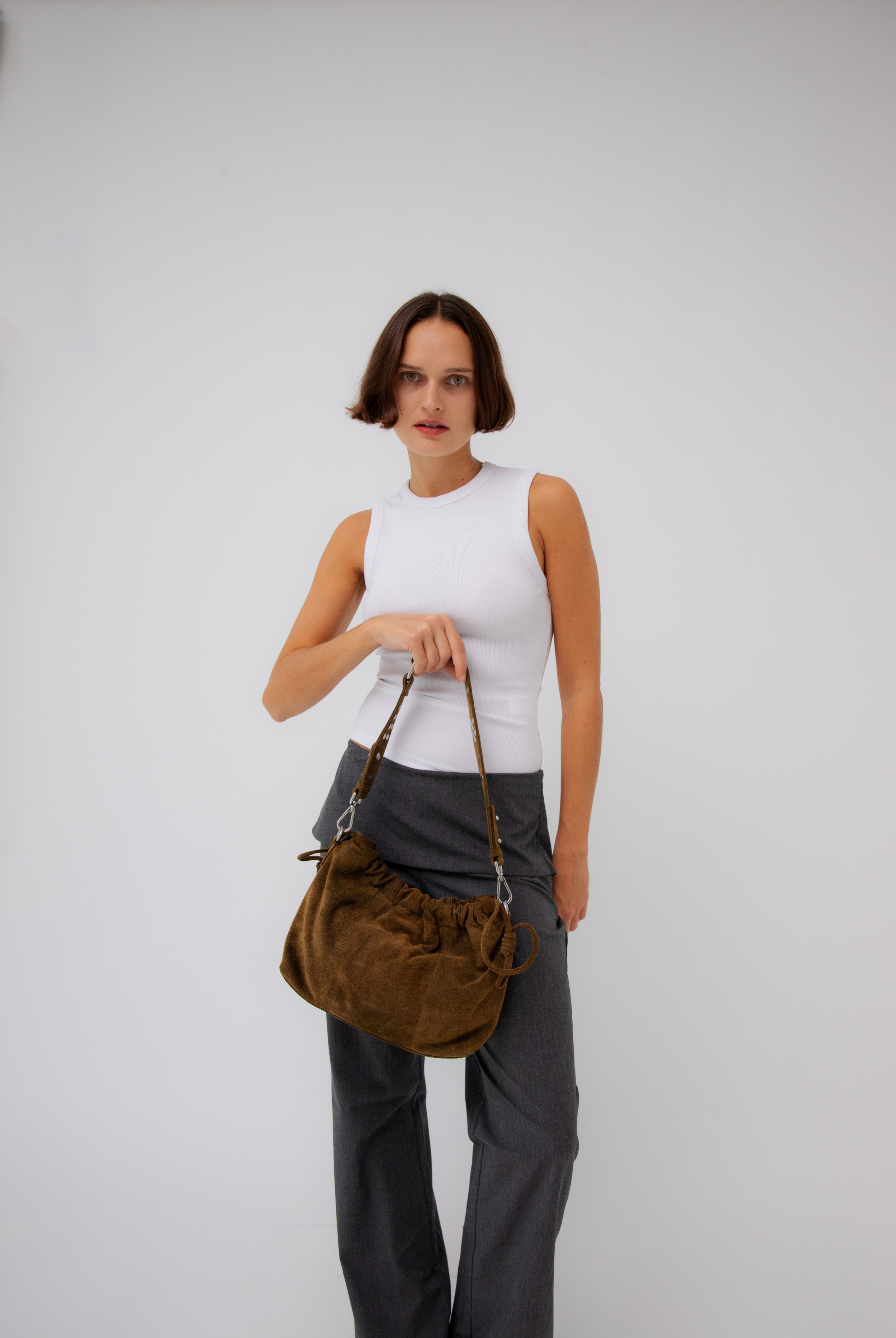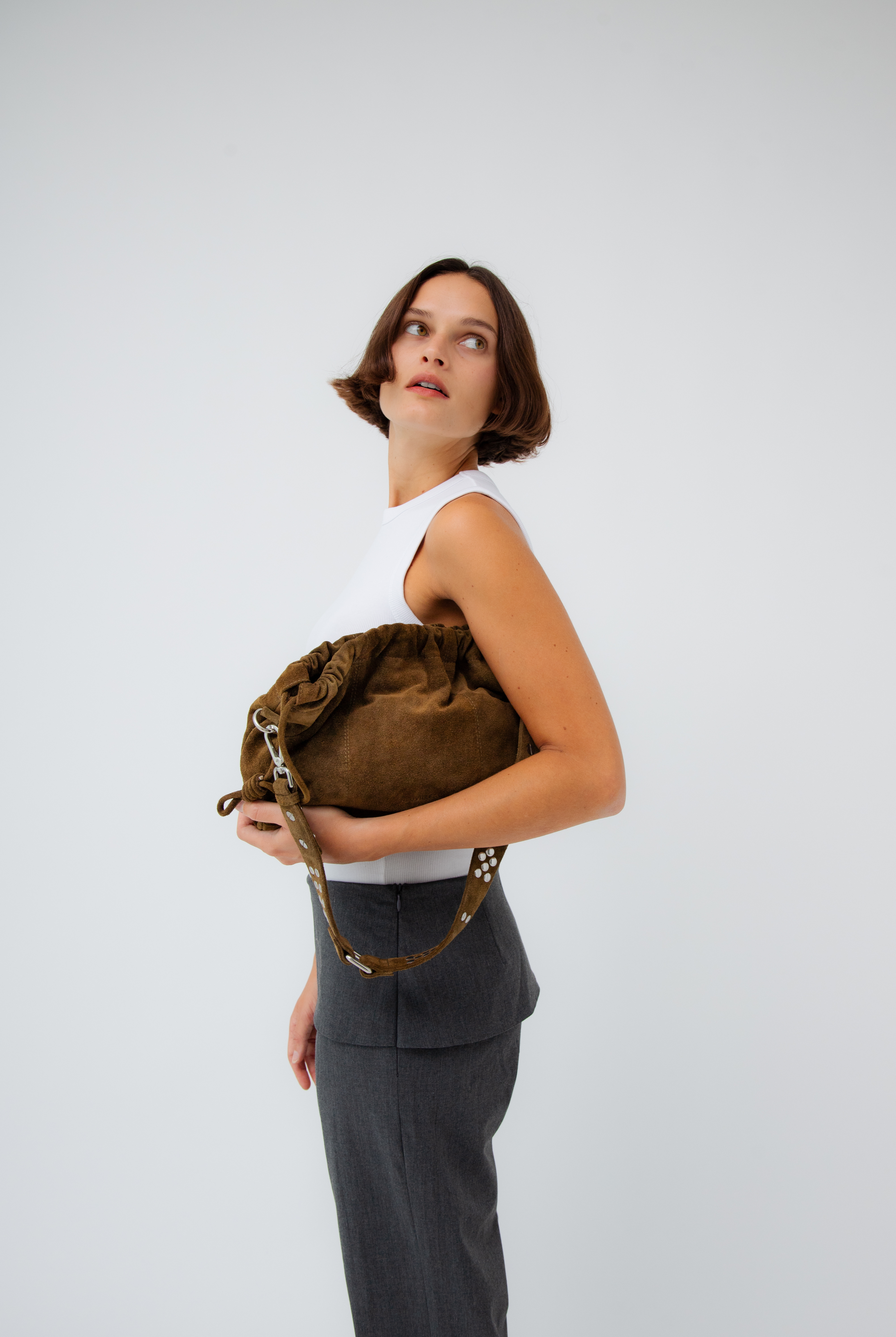 All of these amazing bags in this collection have our iconic shoulder strap with studs, plus a longer strap that is adjustable in size and withut studs. This makes these bags even more versatile because you can change the look of the bag by adding or changing the straps whenever you want.