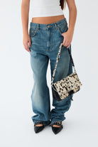 - Trois sangles interchangeables pour faciliter les transitions : une bandoulière en cuir avec des clous métalliques, une sangle transversale réglable en cuir et une chaîne décorative en métal.