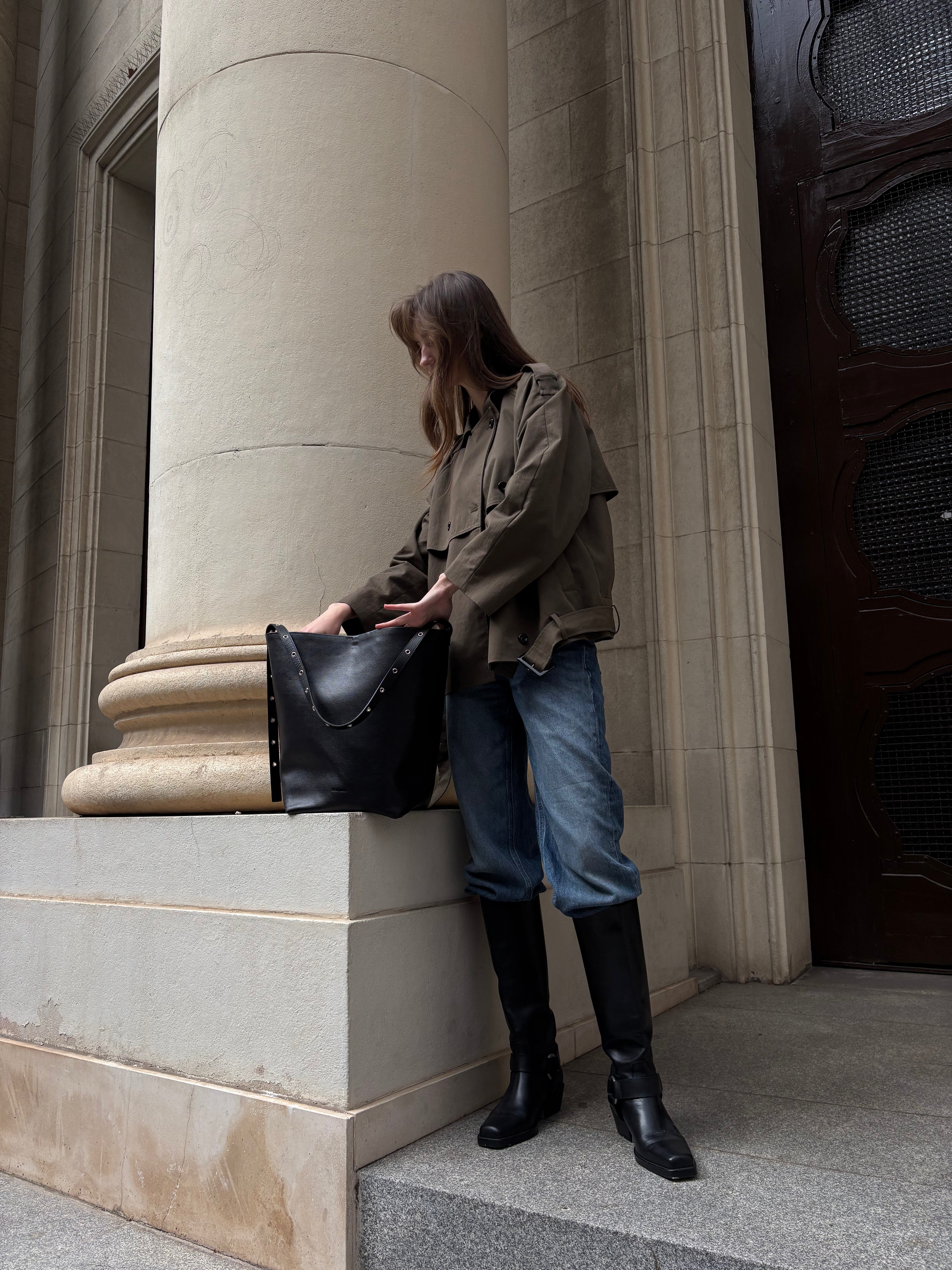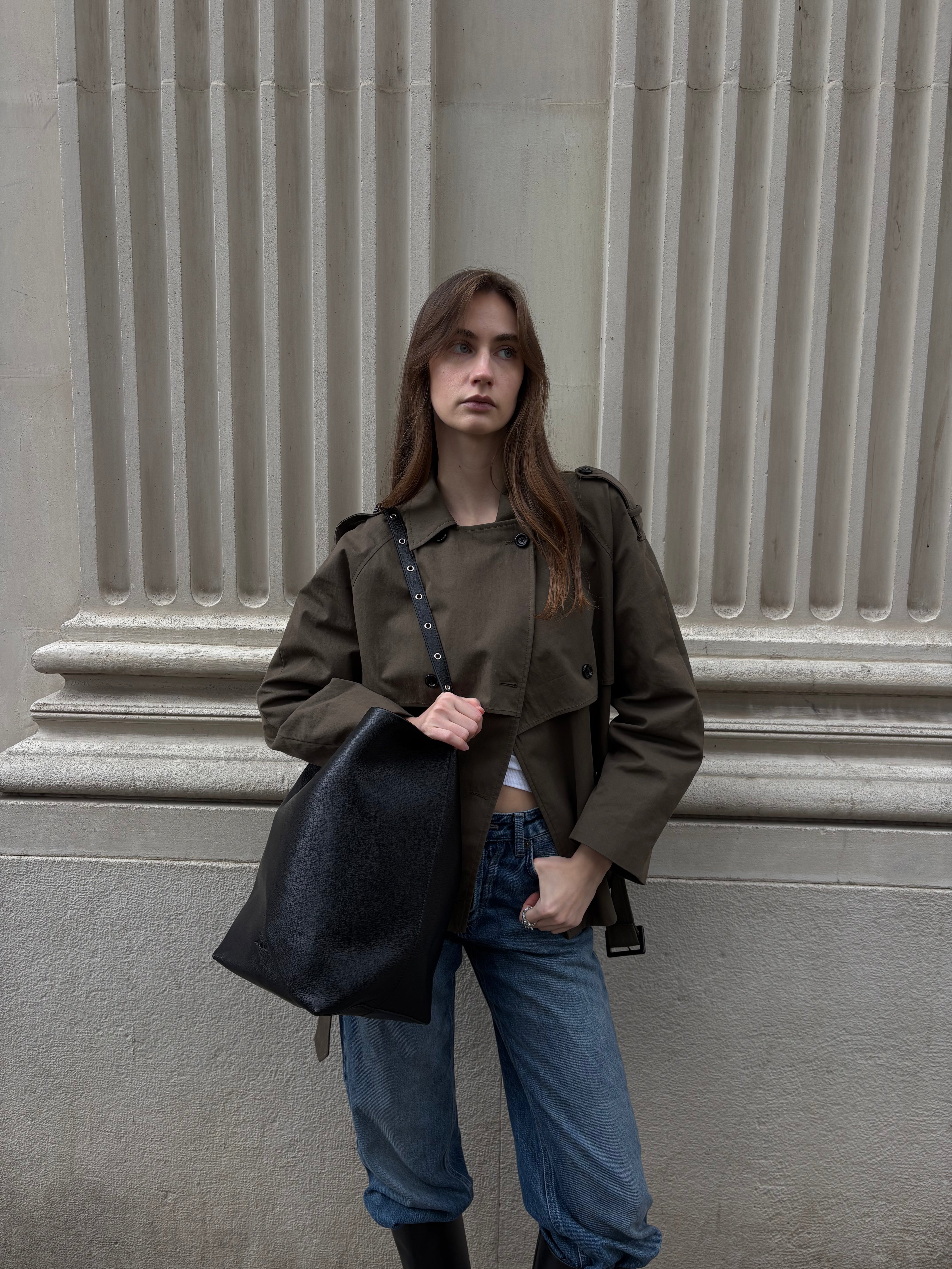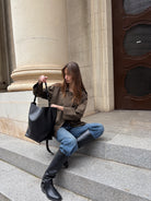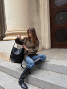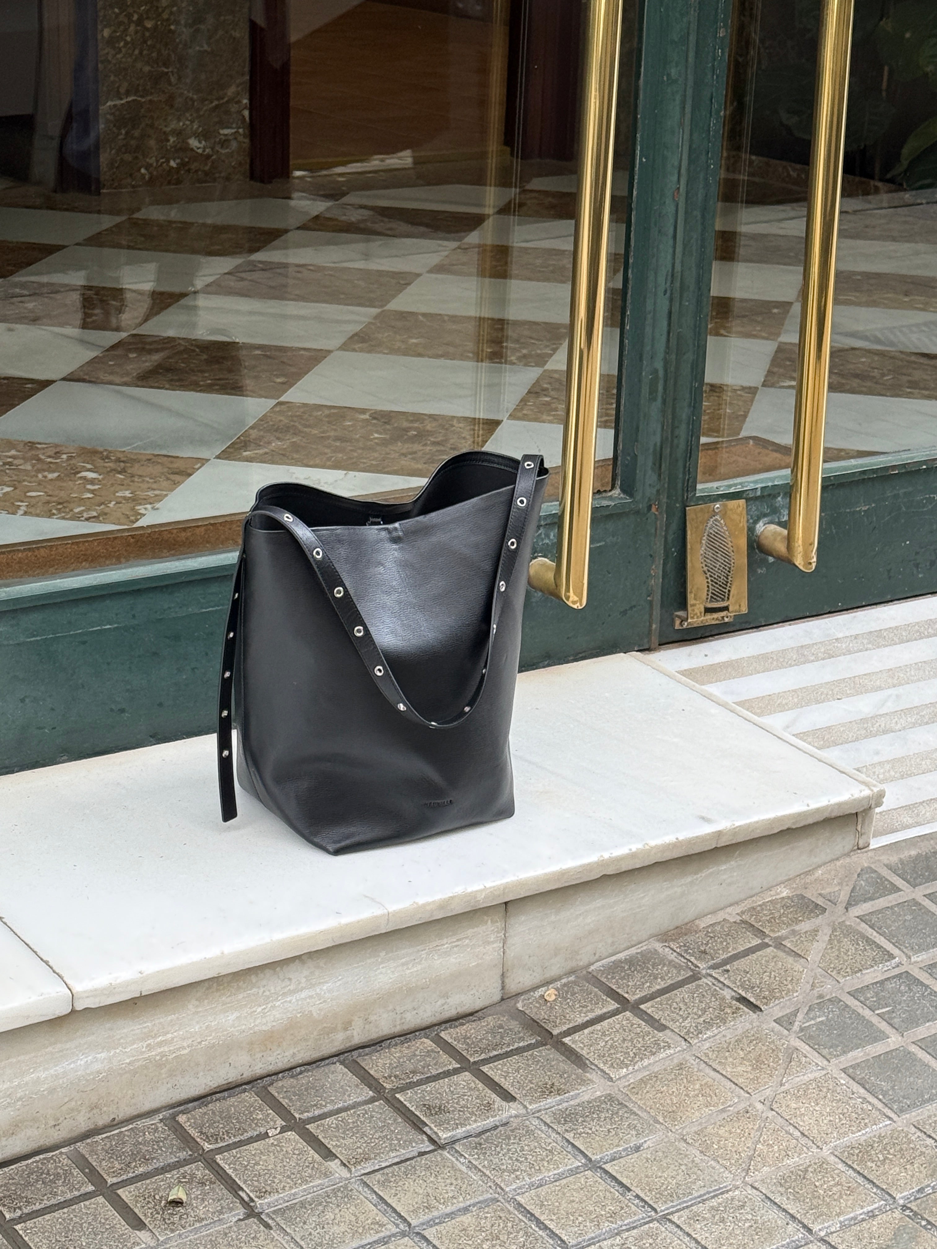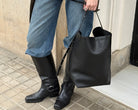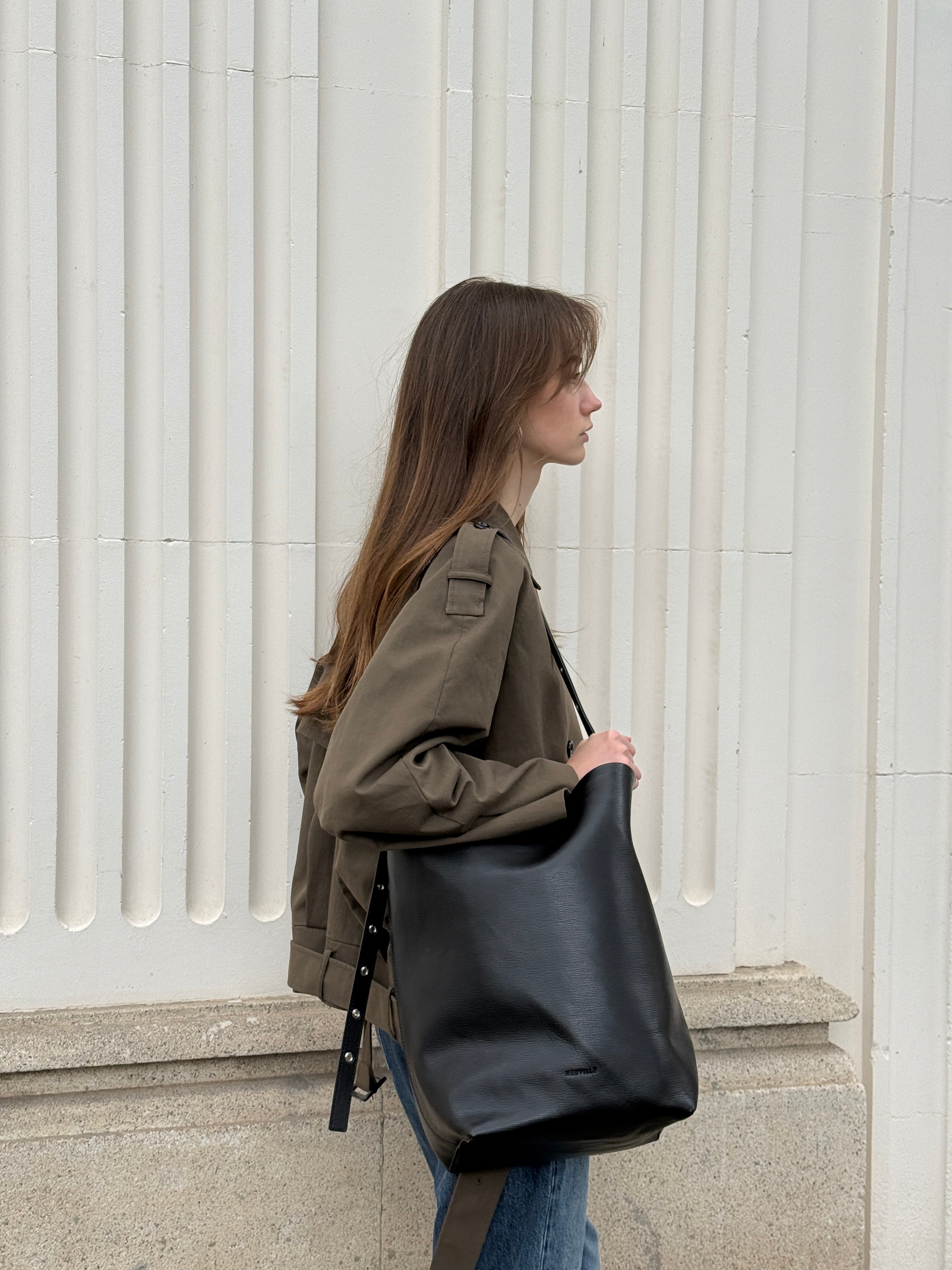 Meet Jeff, the tote that proves minimal can still make a statement. Crafted from smooth, structured black leather, this modern bucket-style bag blends everyday functionality with understated elegance.