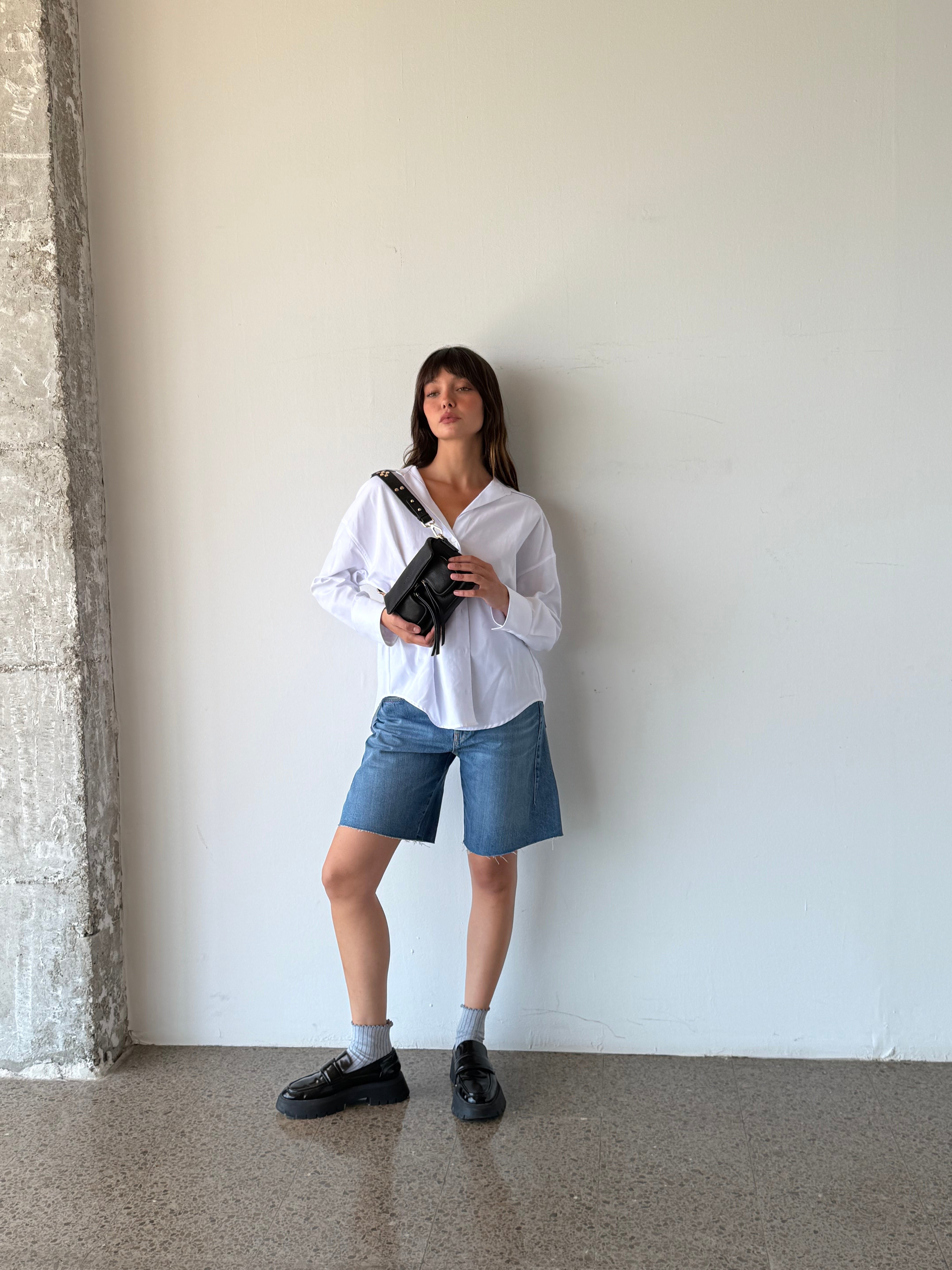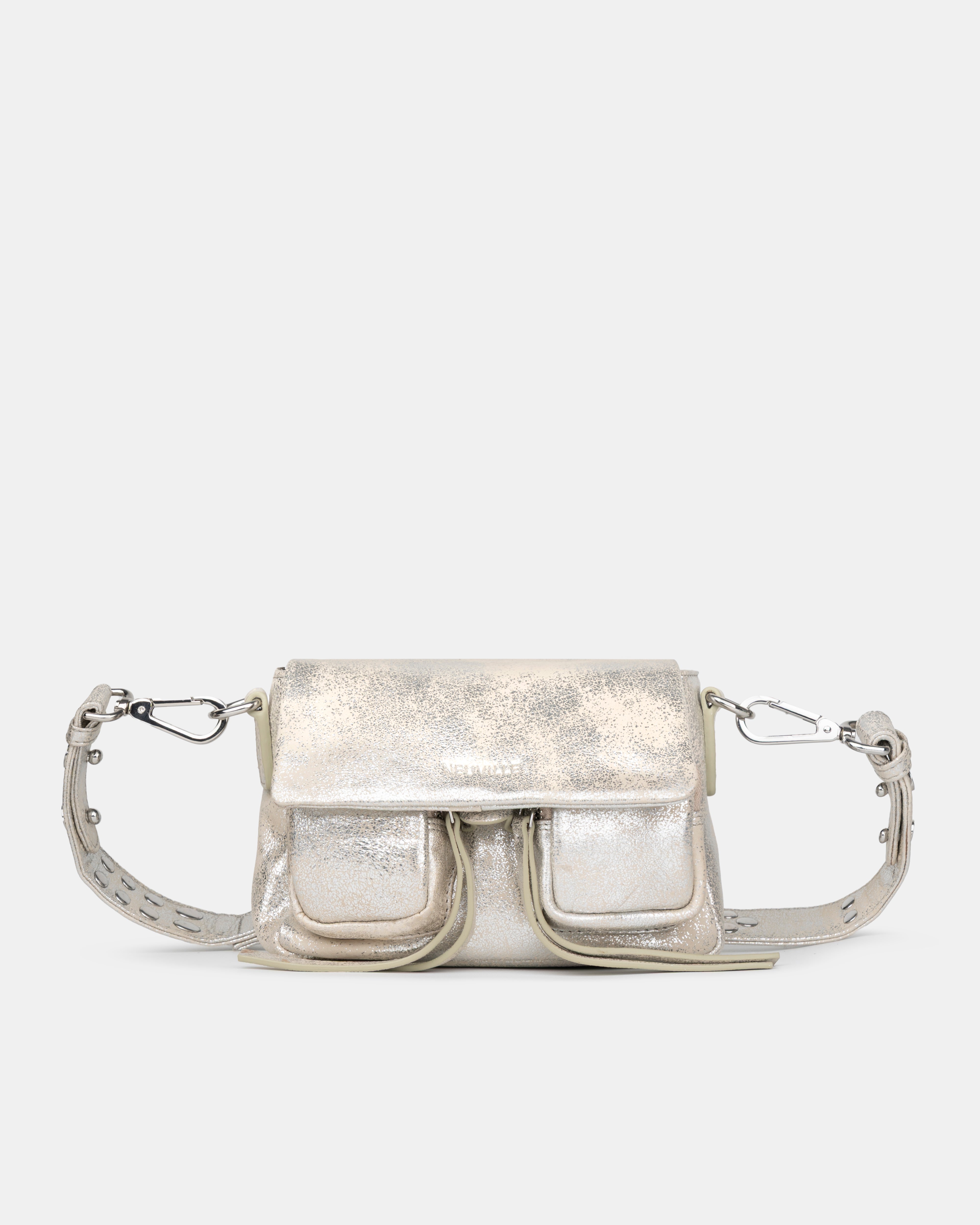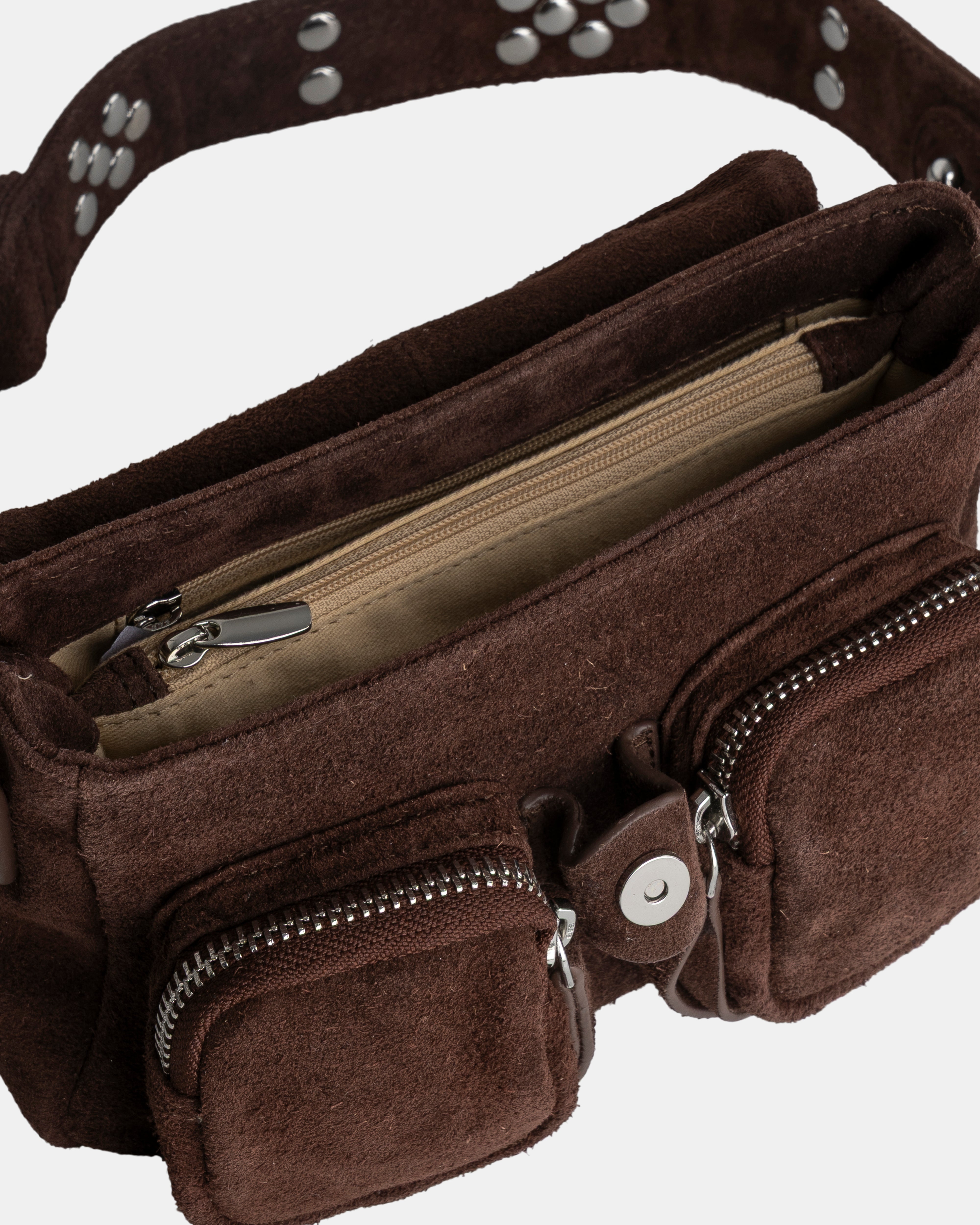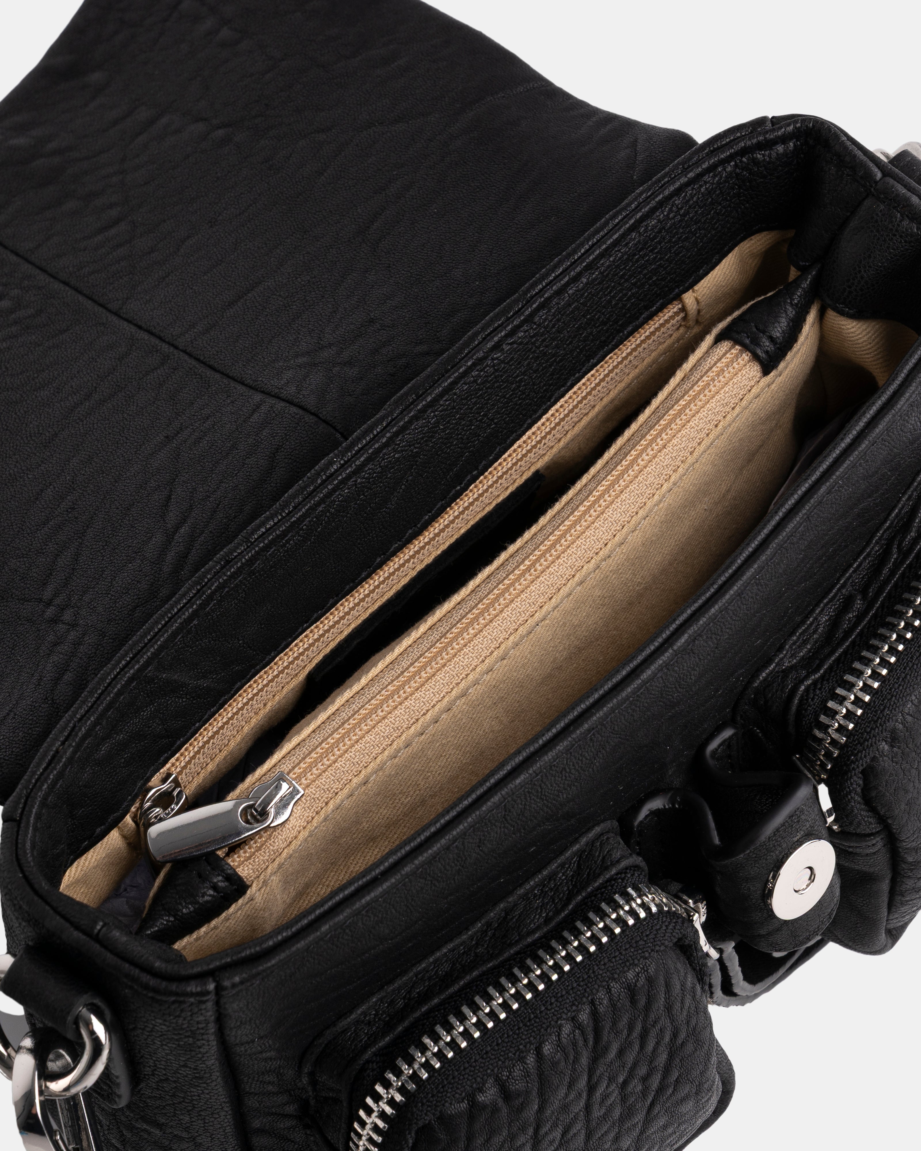 - Three interchangeable straps for easy transitions : a leather shoulder strap with metal studs, and adjustable leather crossbody strap and a decorative metal chain